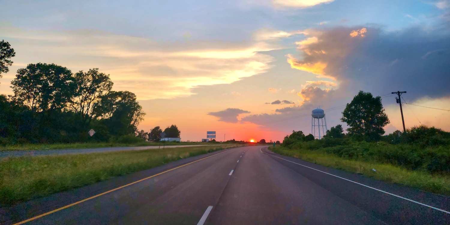 Nightfall found us in the lower tip of Missouri, passing through on our way to our next layover: Arkansas.
