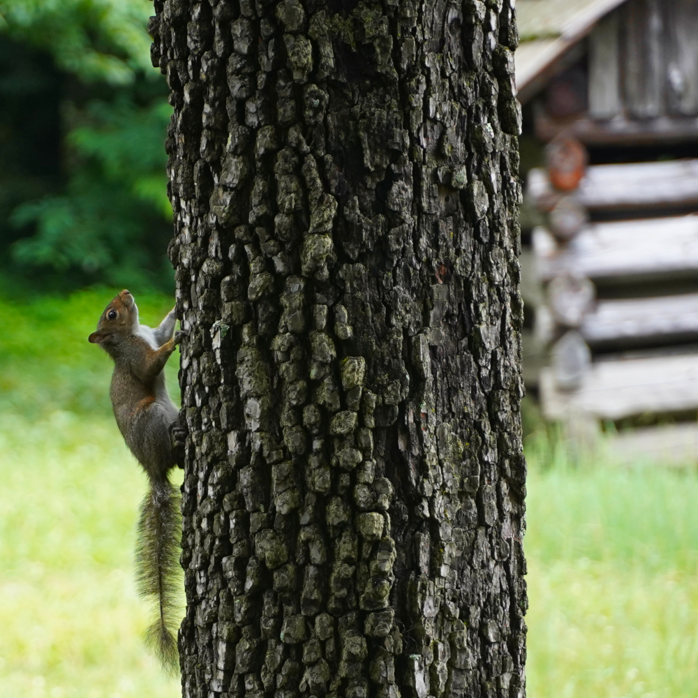 We later hiked around the Cade’s Cove area, which features a few historic pioneer buildings — and some later imitations. Among them are a couple of Nineteenth Century log cabins, one of which is about 200 years old.