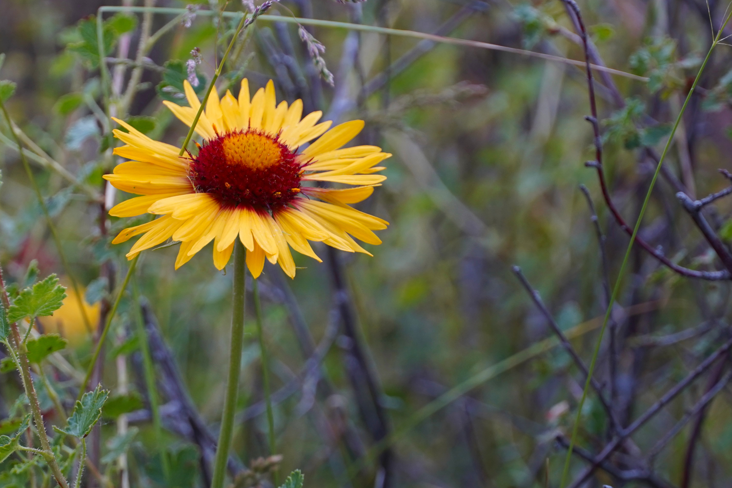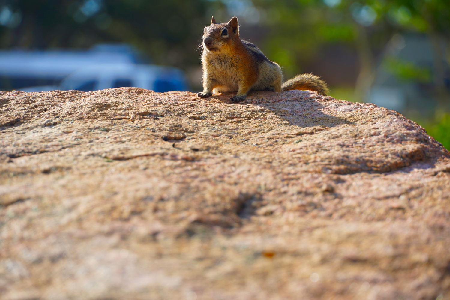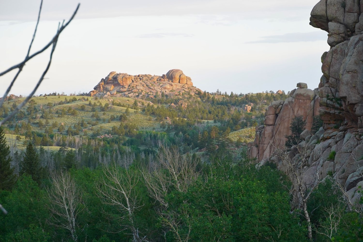 We holed up for a couple of nights near Laramie, at Curt Gowdy State Park (named after a distinguished TV sportscaster who was a Wyoming native). There was no electricity, but we spread out our portable fold-up solar panel (which became a hangout spot for some of the little critters). Kimberly stretched out her beloved slackline, and practiced some circus skills.