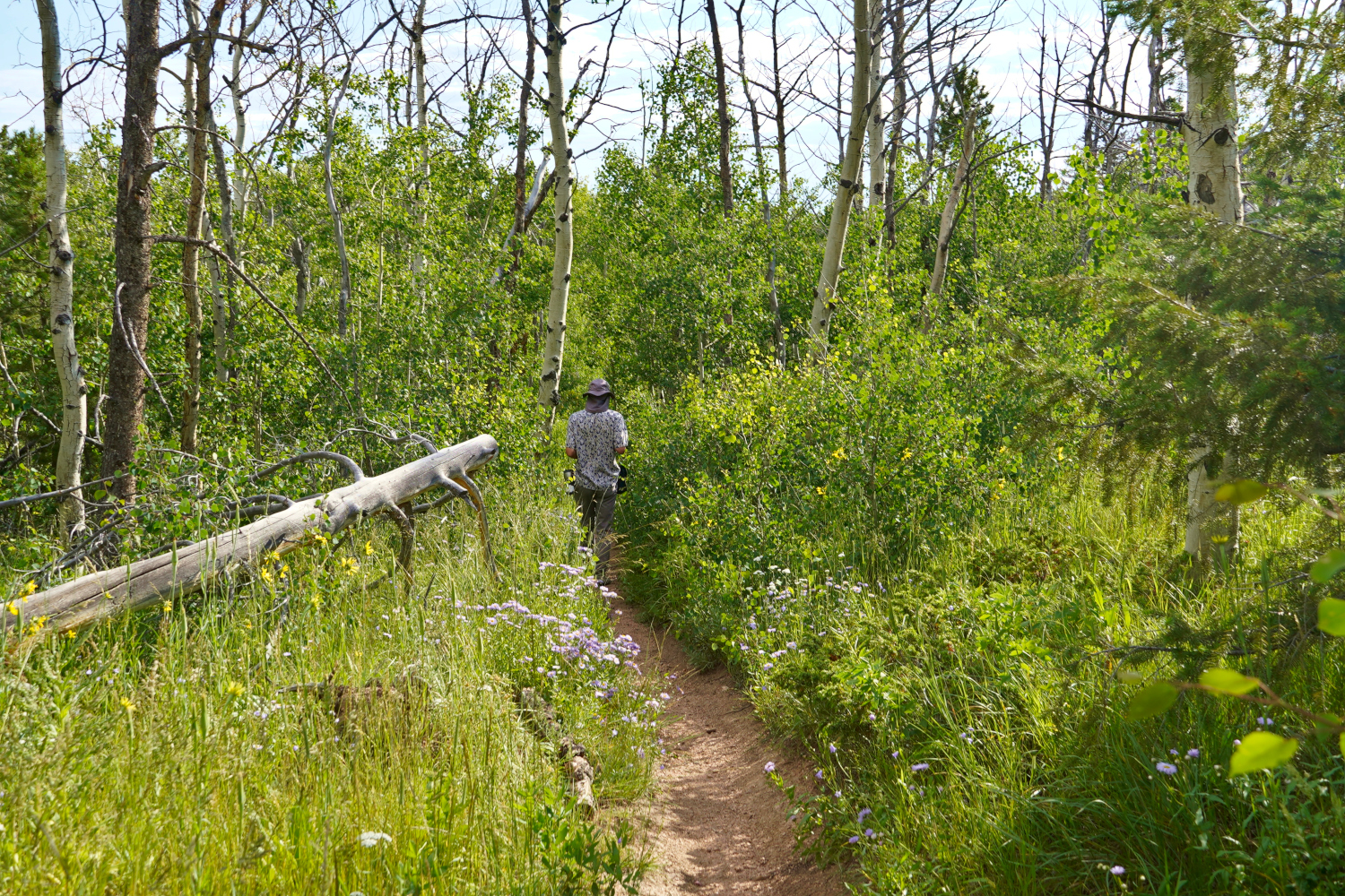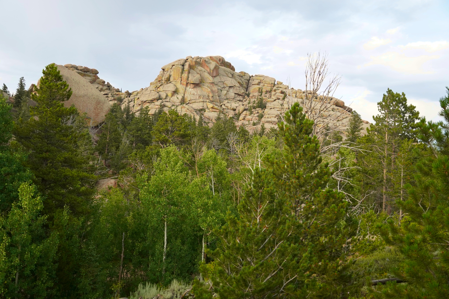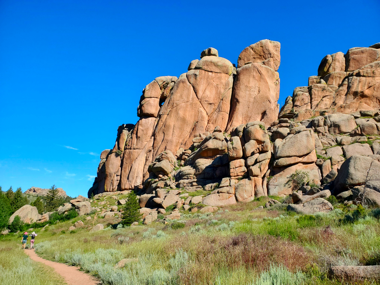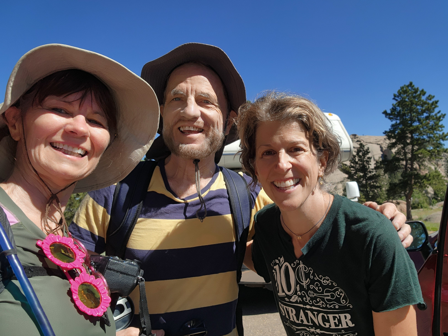 At one point in our stay, we were joined for a while by our friend Deb, who lives in Laramie. Dennis decided to make the outing even more of a challenge by indulging in some rucking, which he’d just read about. Rucking, which is reputed to have tremendous fitness benefits, is simply hiking while carrying weight on your back (or elsewhere). And while we are not up to Navy SEAL level, he did load up a backpack with a few cans of food and other items, bringing the total load up to 15 pounds or so. And he survived.