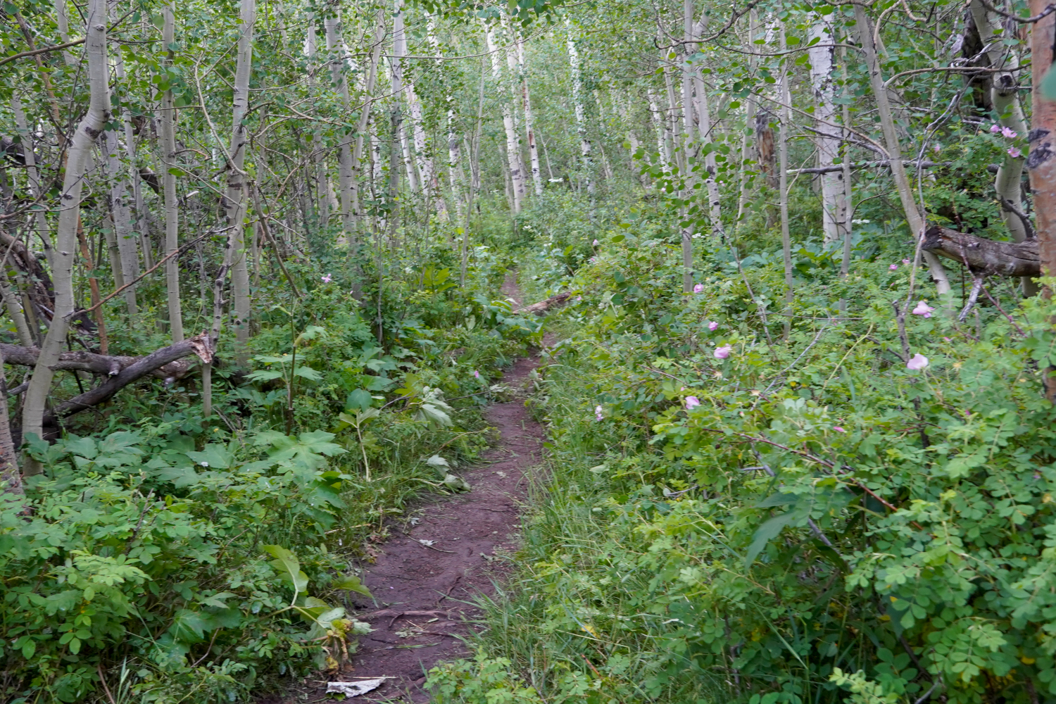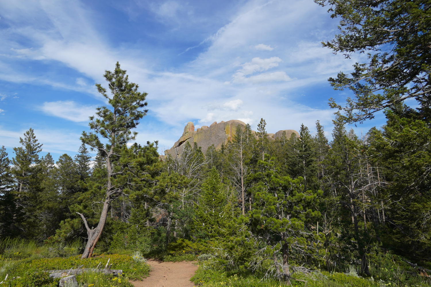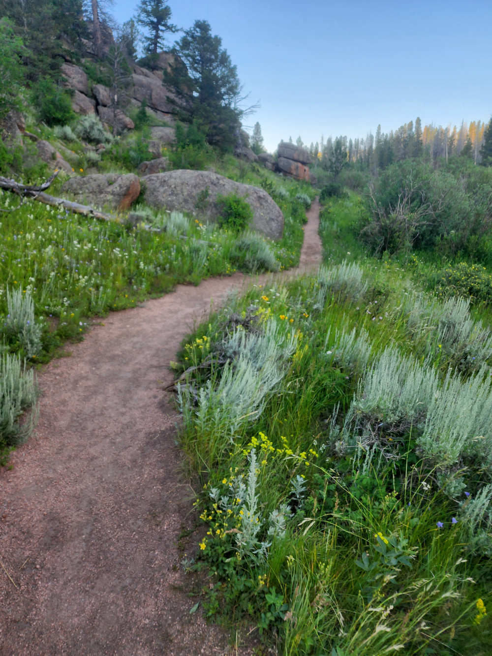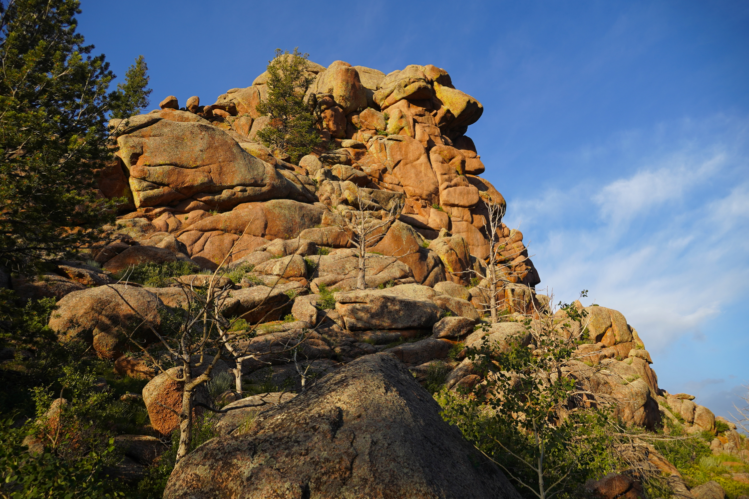 At one point in our stay, we were joined for a while by our friend Deb, who lives in Laramie. Dennis decided to make the outing even more of a challenge by indulging in some rucking, which he’d just read about. Rucking, which is reputed to have tremendous fitness benefits, is simply hiking while carrying weight on your back (or elsewhere). And while we are not up to Navy SEAL level, he did load up a backpack with a few cans of food and other items, bringing the total load up to 15 pounds or so. And he survived.