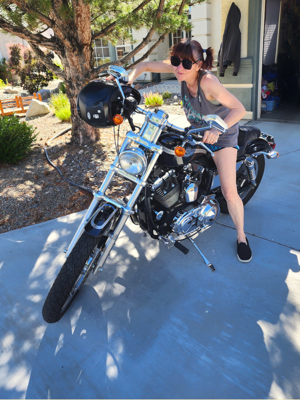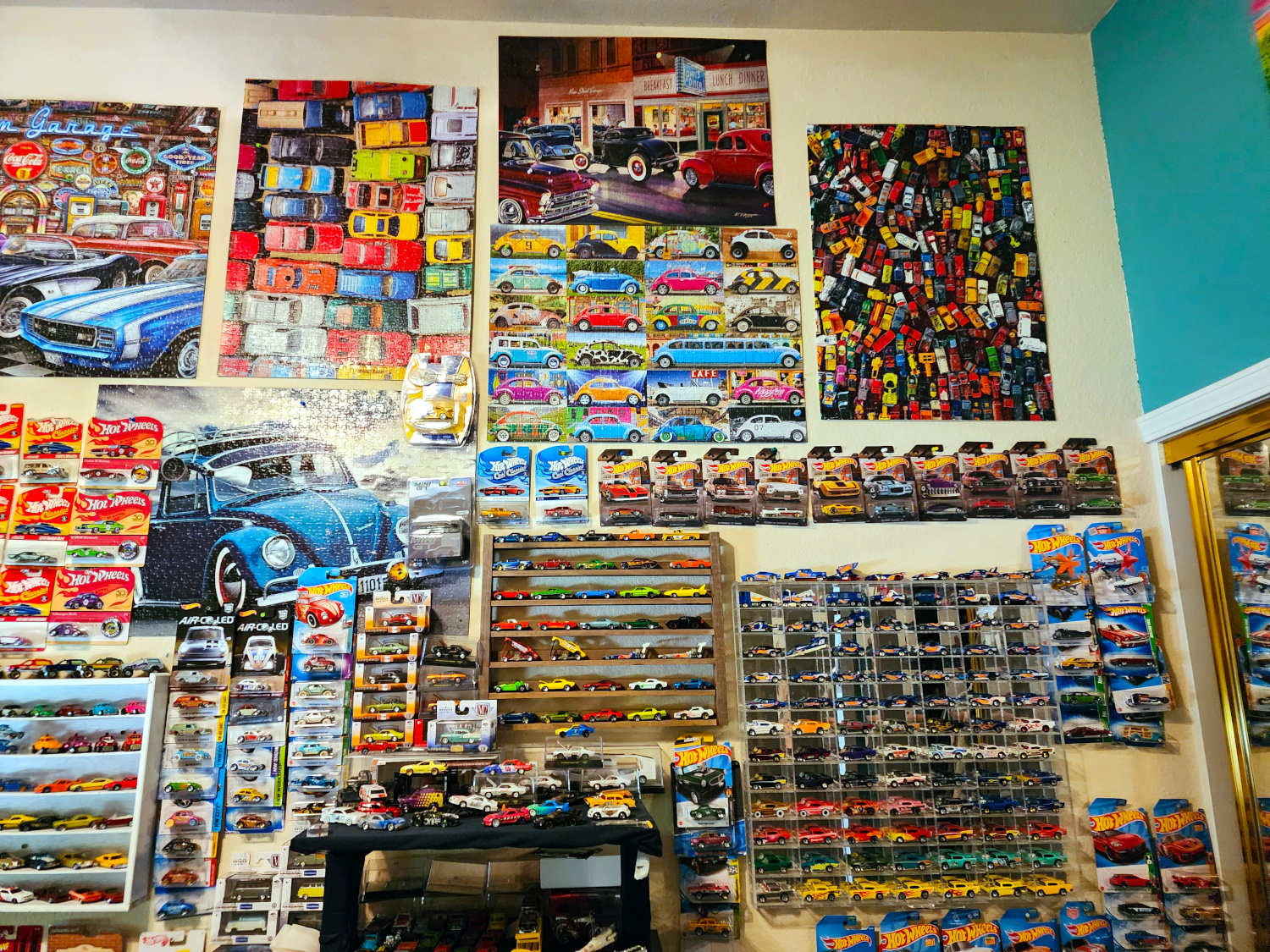 We were able to spend some time with Jenny, and with her brother Joey, who is the tech whiz in the family (our go-to guy whenever we have a computer question or tech problem). He came putting in on his motorcycle, which we’d never ride, but don’t mind posing with. Kimberly’s brother Chris is much more into cars, especially tiny ones — he has a huge collection of them all over his wall.