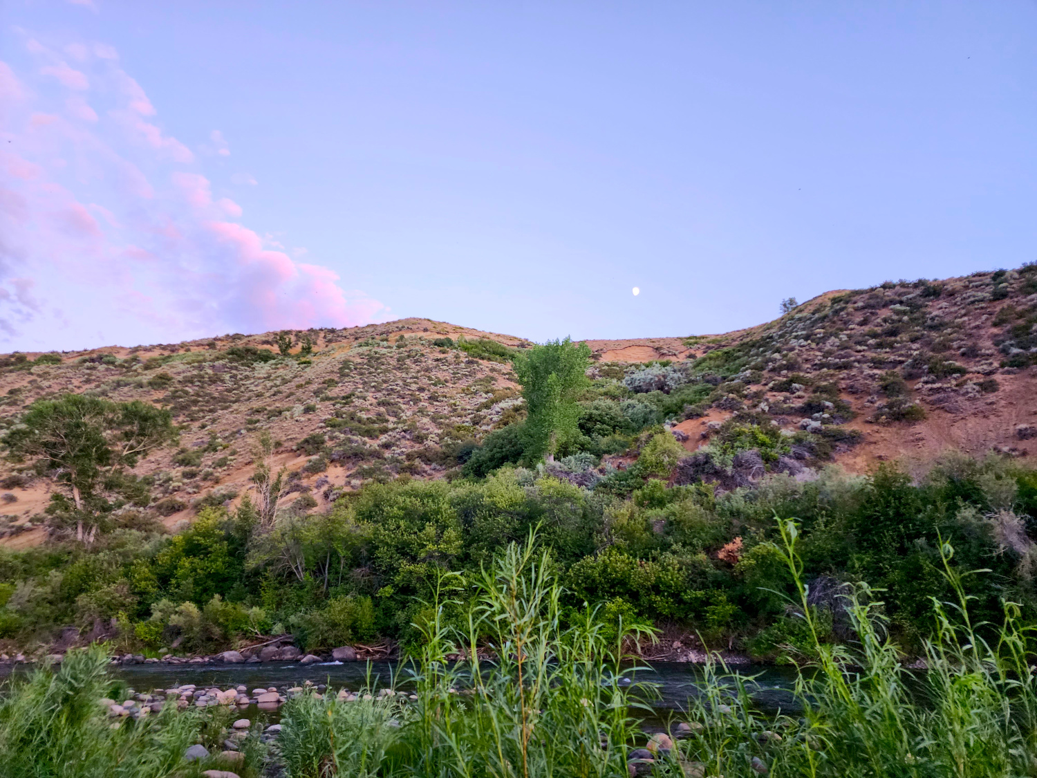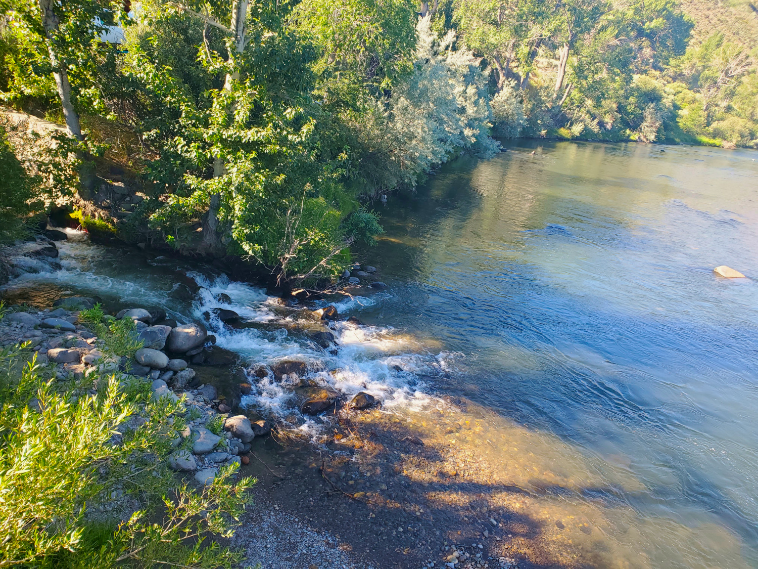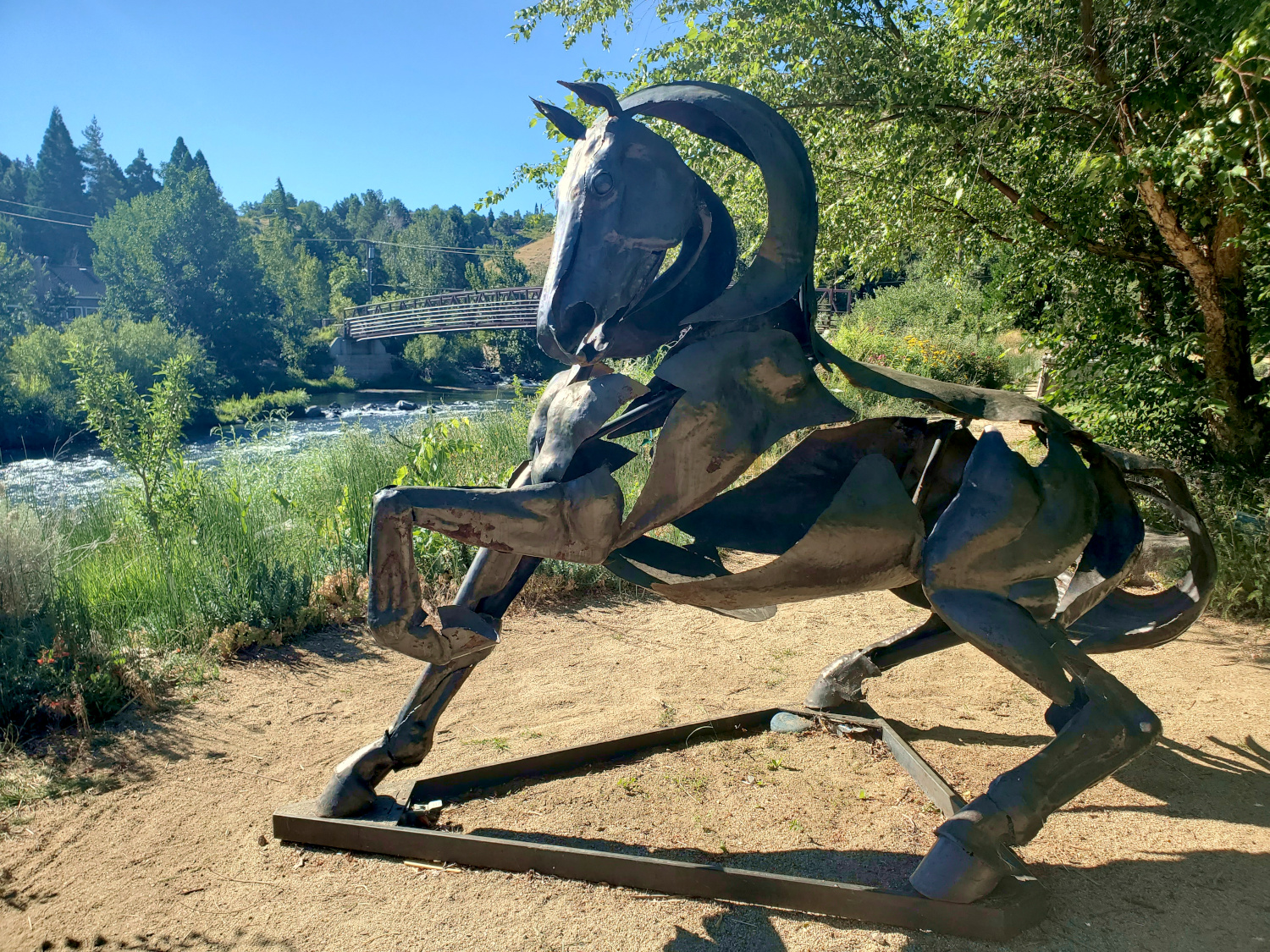 The beautiful Truckee River runs right through the heart of Reno, and attracts nature lovers, whitewater enthusiasts, fisherpersons, and sometimes even bathers. We took a hike along it in Mayberry Park, where we did a photo shoot three years earlier on the occasion of our 30th anniversary. Next to the park is a center called River School Farm, where, also three years earlier, we filmed a video to be offered as virtual performances during the coming year, since we were unable to do any live presentations because of the pandemic.