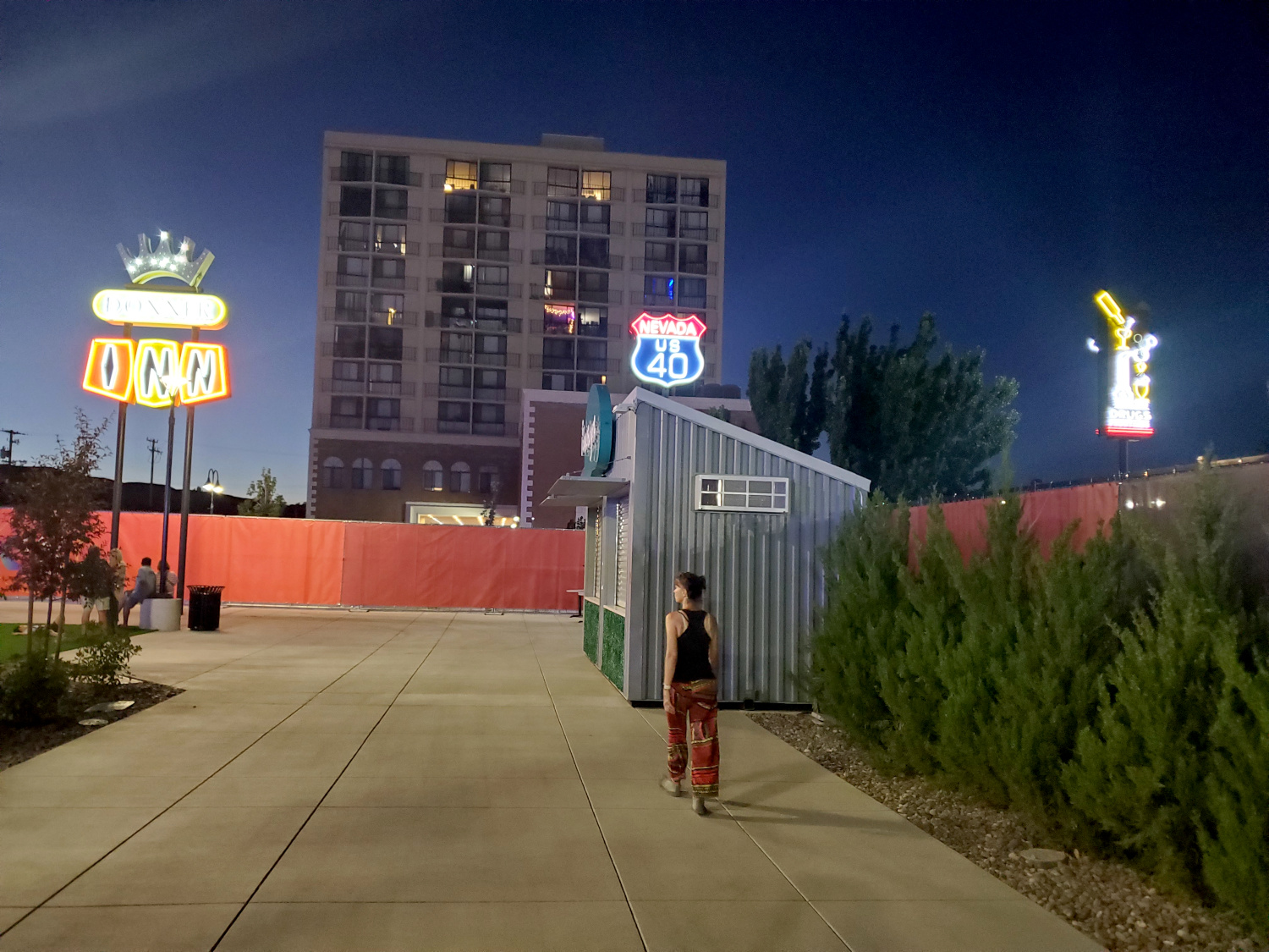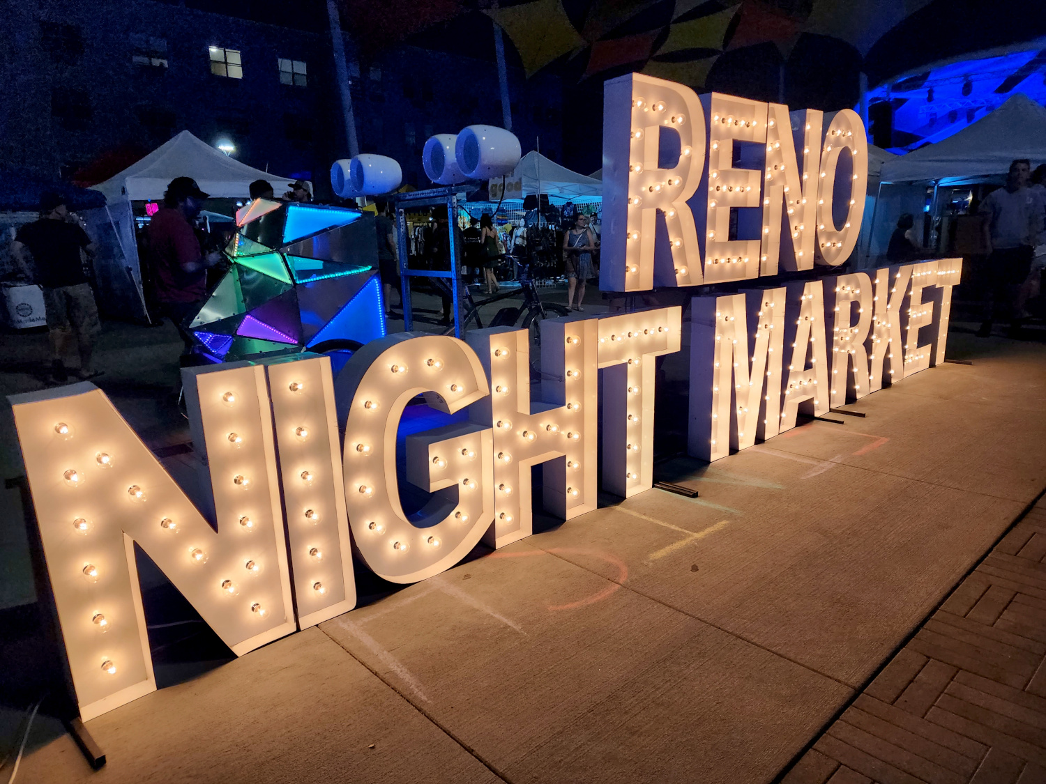 We also dropped by Reno Night Market, which is held during the summer months (this is a new development since our days of spending time in Reno), an open-air marketplace of arts, crafts, foods, and so on, complemented by entertainment and a really cool assortment of genuine vintage neon signs.