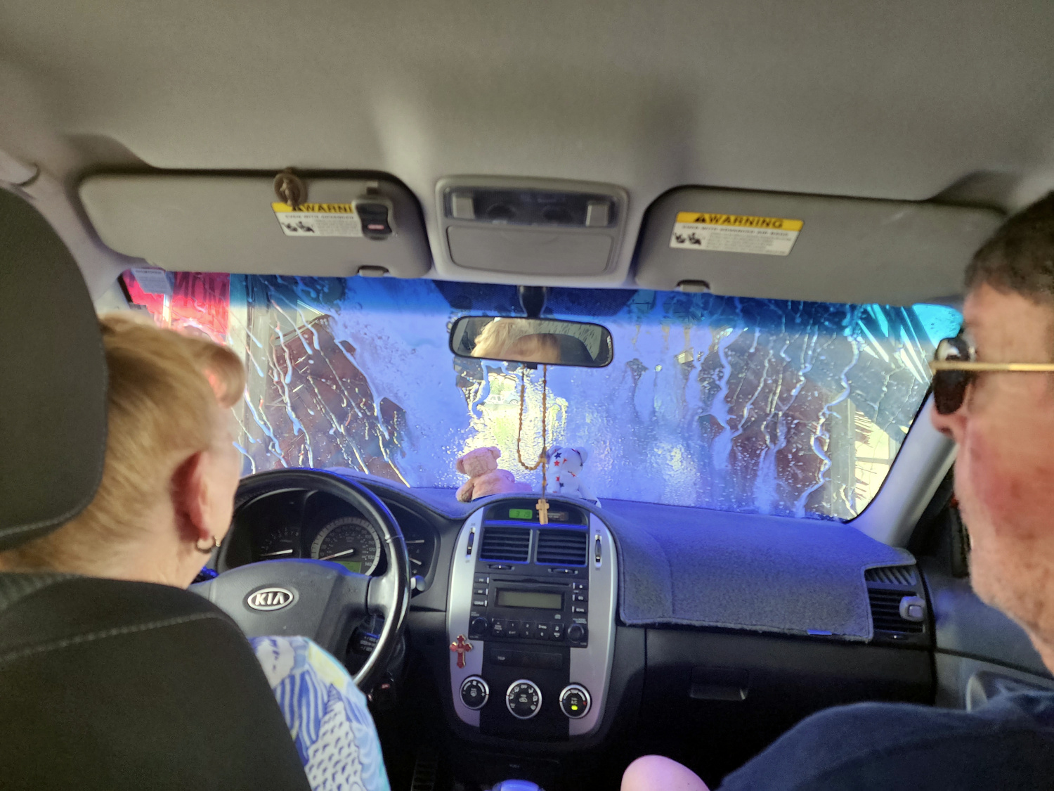 Having driven an RV or large van for over 30 years we are also amused by automatic carwashes. They are so much fun. So when it was time for mom and dad to get their car washed we felt like we were on a ride at Disneyland.