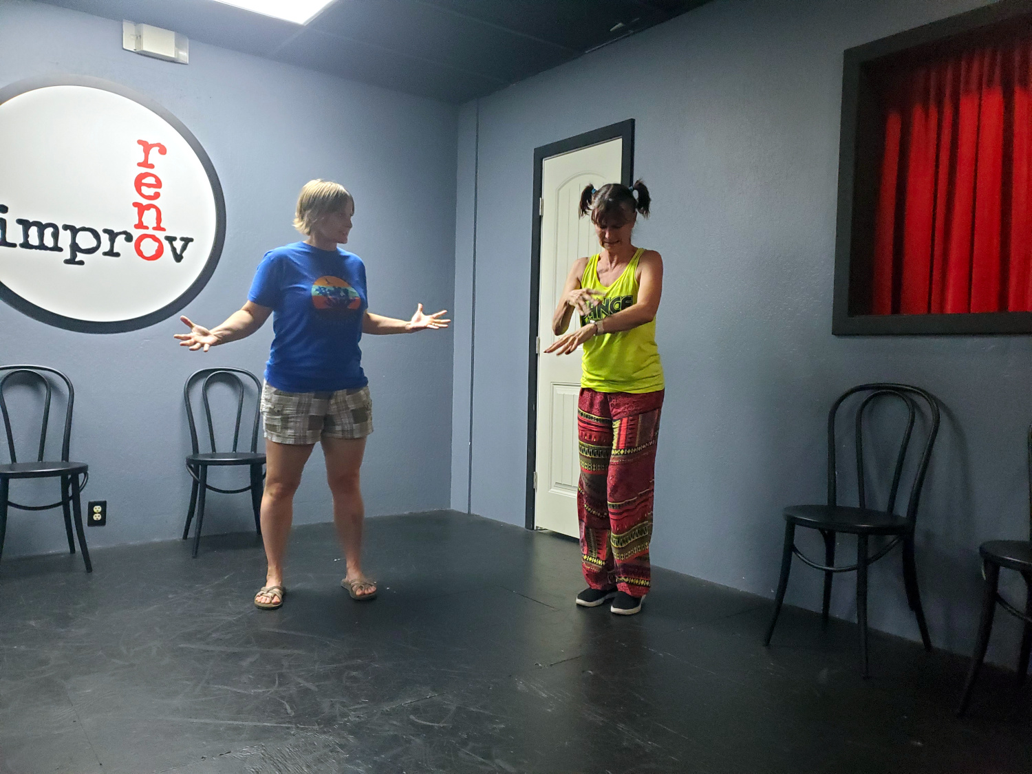 The two of us returned to the Reno Improv, where as we mentioned before, we’d attended a performance with niece and nephew already. This time, we not only caught another performance by the troupe of regulars, but just before it began, we participated in an improv class, which is something we hadn’t done in years.