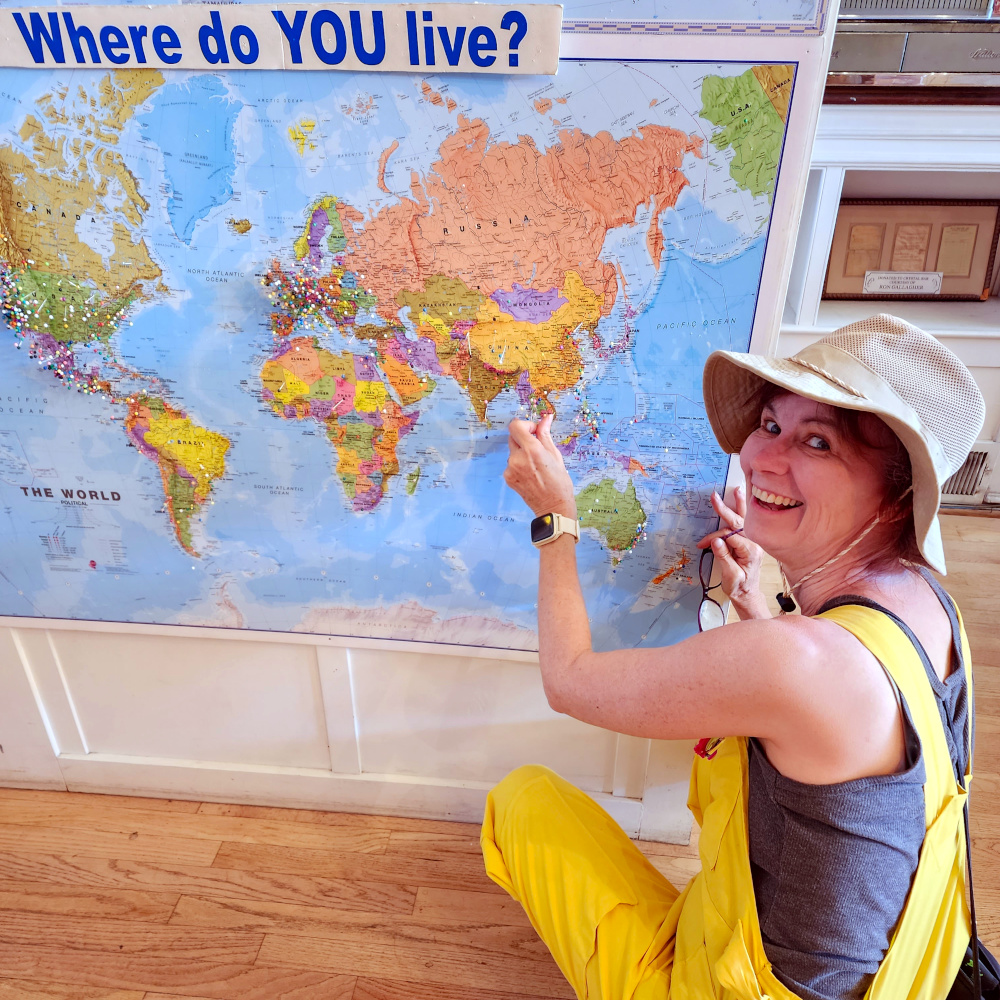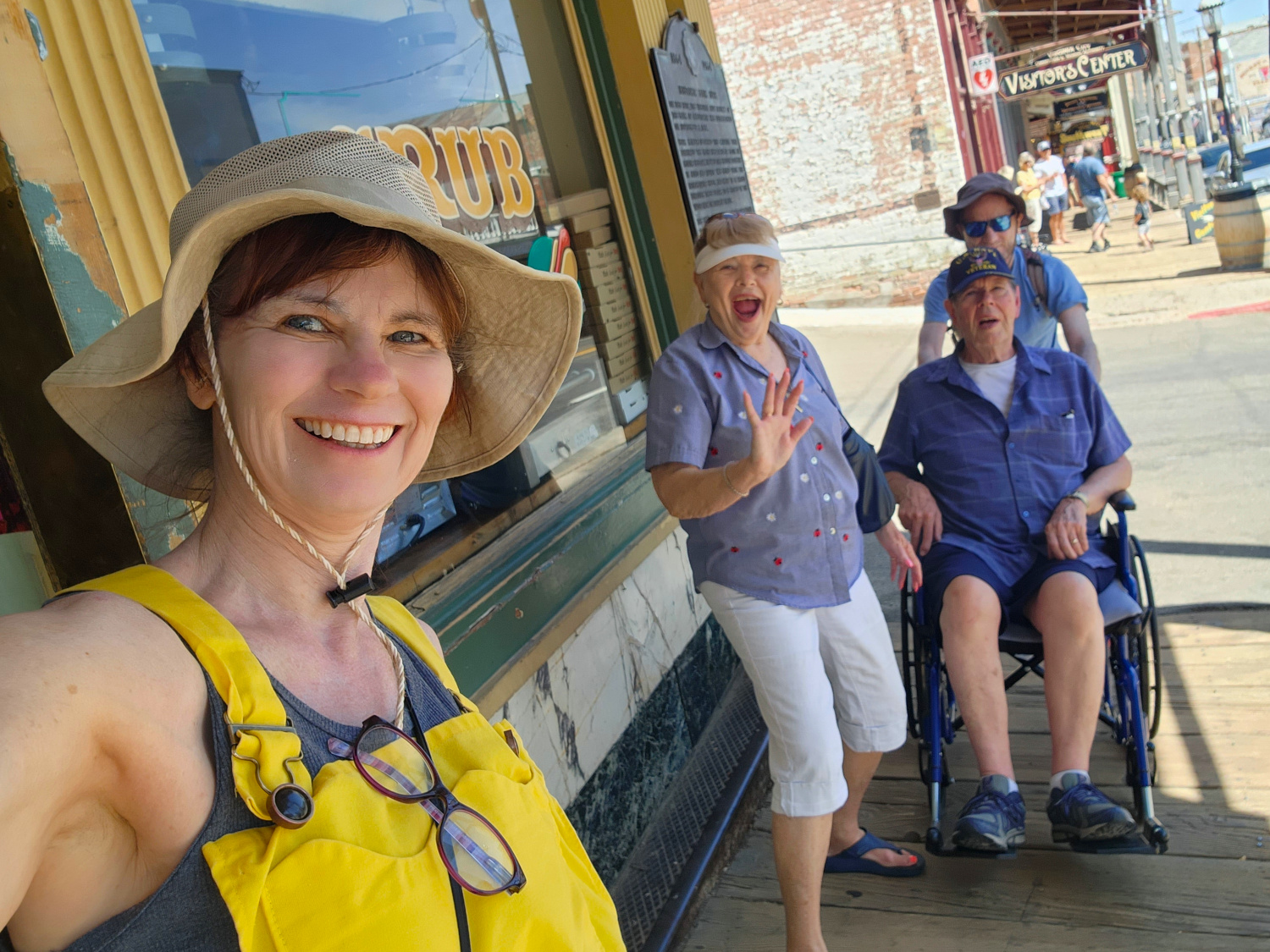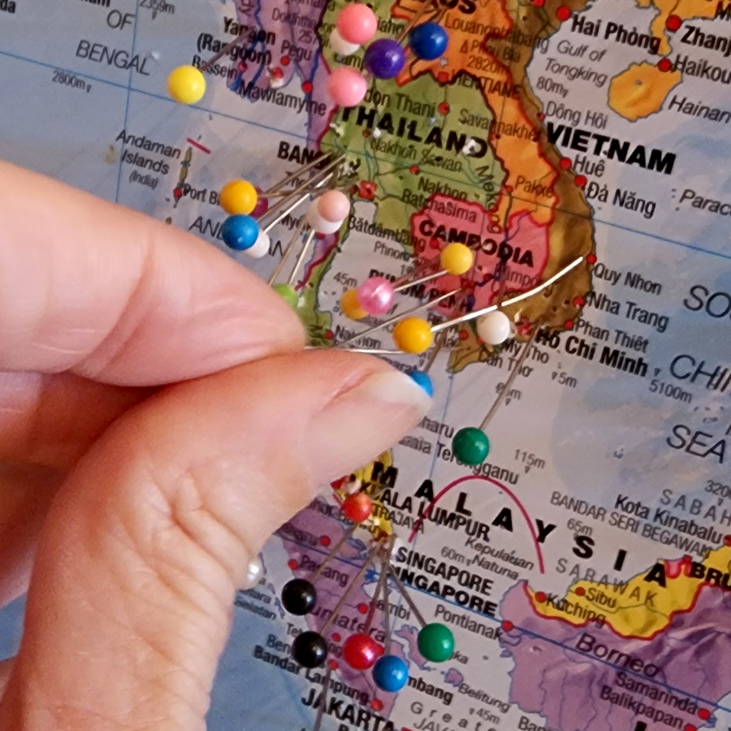 On one wall in Virginia City, we saw one of those maps equipped with a supply of pins so visitors can mark where in the world they came from. And we couldn’t resist putting one up for ourselves, right on Cambodia. Because that was where we’d been, and that was where we were headed, for an extended period of time. It’s as much home as anywhere else.