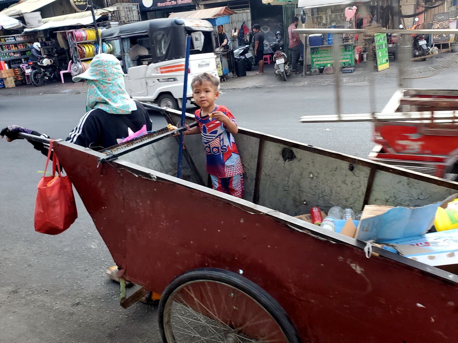 Normally it would have been no problem, because we almost always carry a little cash with us. This time we had almost none, so we could not make a contribution to the happy couple, as we apparently were expected to do. A few minutes later, we even took careful stock of our currency, and confirmed we had nothing except for some 20 dollar bills that were slightly worn — only very slightly, but Cambodian businesses won’t accept them if they have any flaws at all. So we were, apparently, the only ones who “blessed” them without actually blessing them.