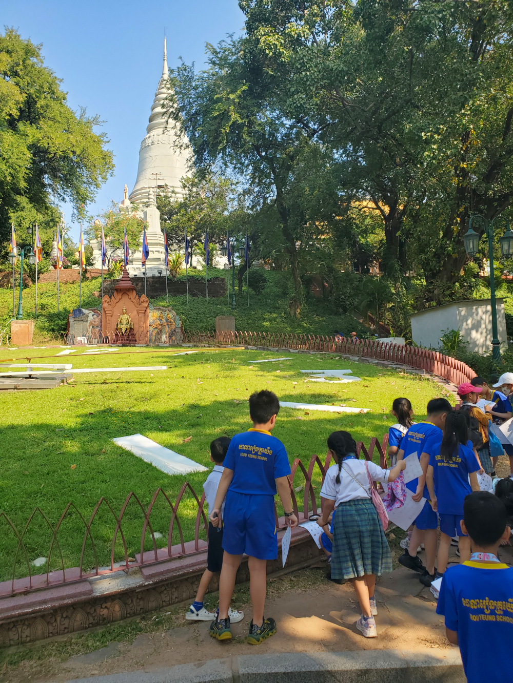 Early in January, the school started the new year right with its second field trip of the school year, this time a half-day excursion to the historic attraction called Wat Phnom. Kimberly did not go along, as she still needed to teach the wee kids during the morning. But Dennis accompanied the group, and was supposed to help keep tabs on the Second Graders, but ended up helping to corral some stray First Graders as well.