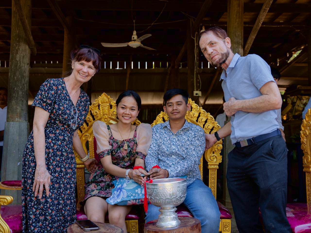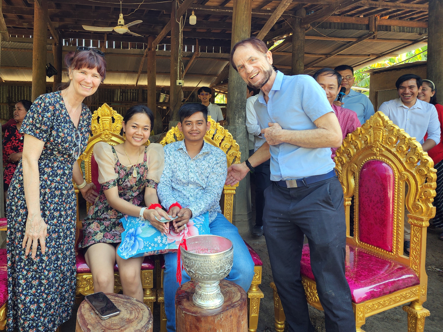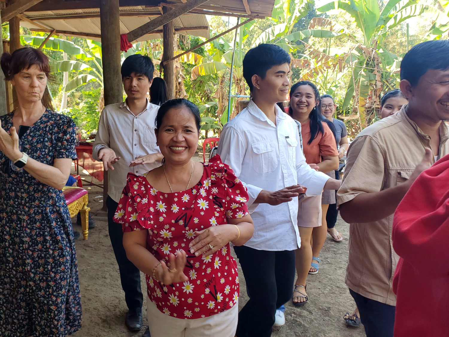 It actually began with a 2-hour drive, north of the city and way out into the sticks. Because the first stop was a wedding celebration. One of our fellow teachers had gotten married a couple of days earlier. Cambodian wedding celebrations last several days, and this part of it was at the home of family members. So as the school director, who was also present, told us, it was a chance to see the “real Cambodia”.