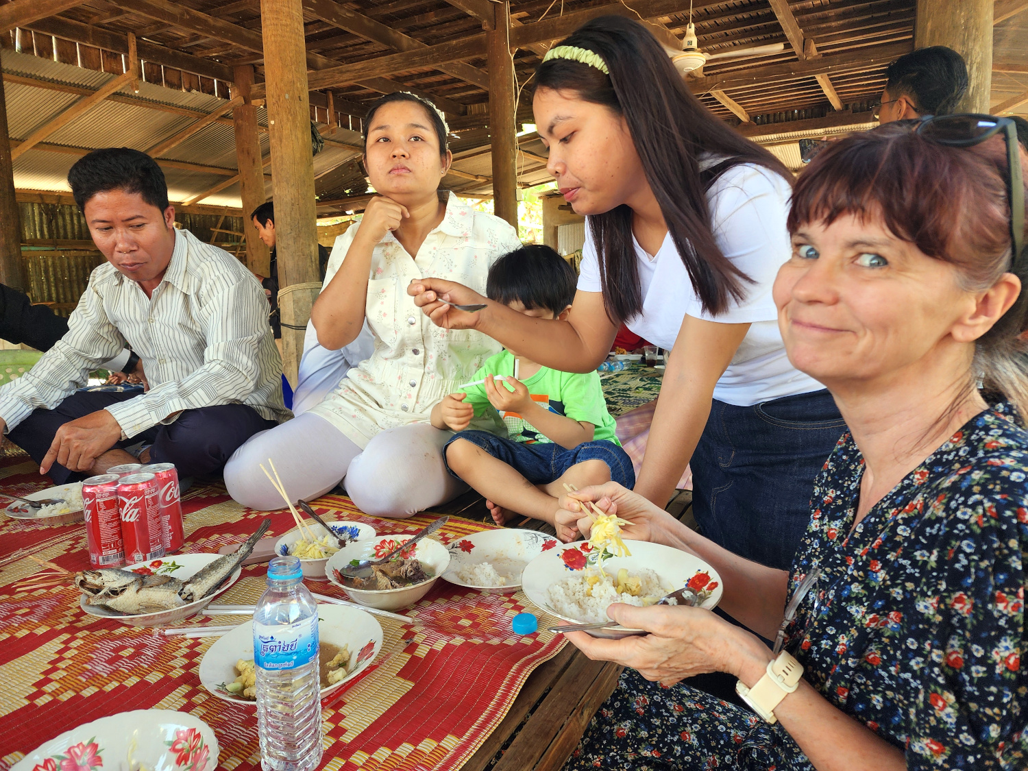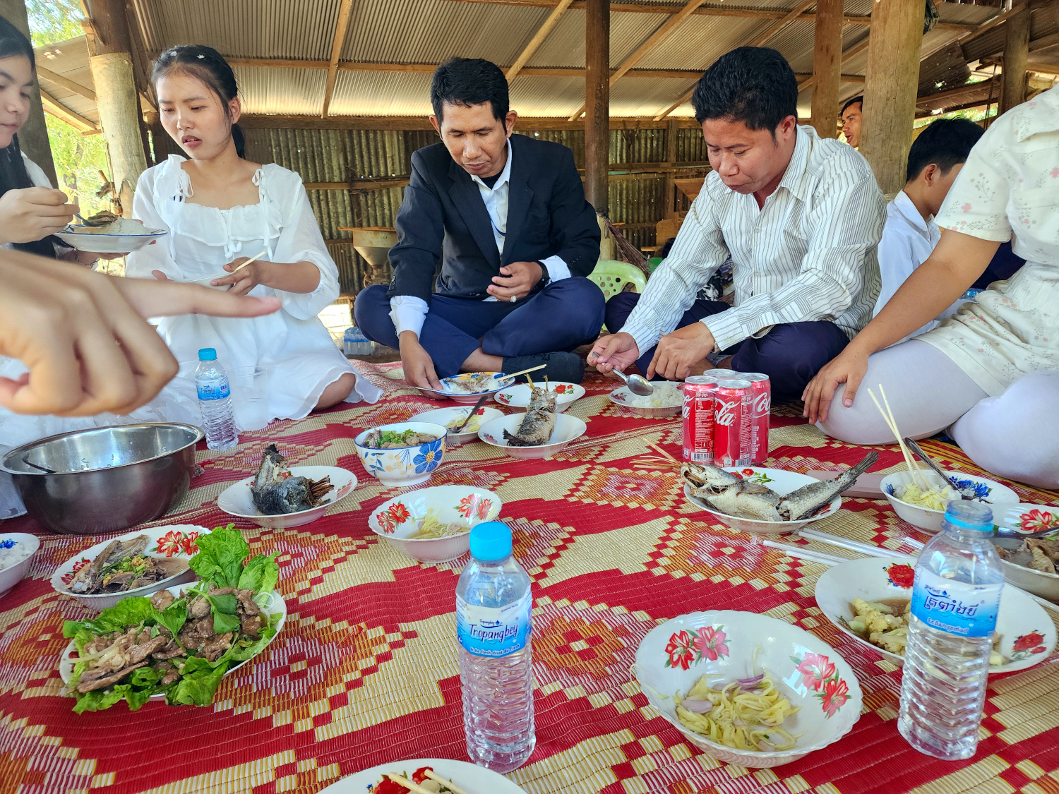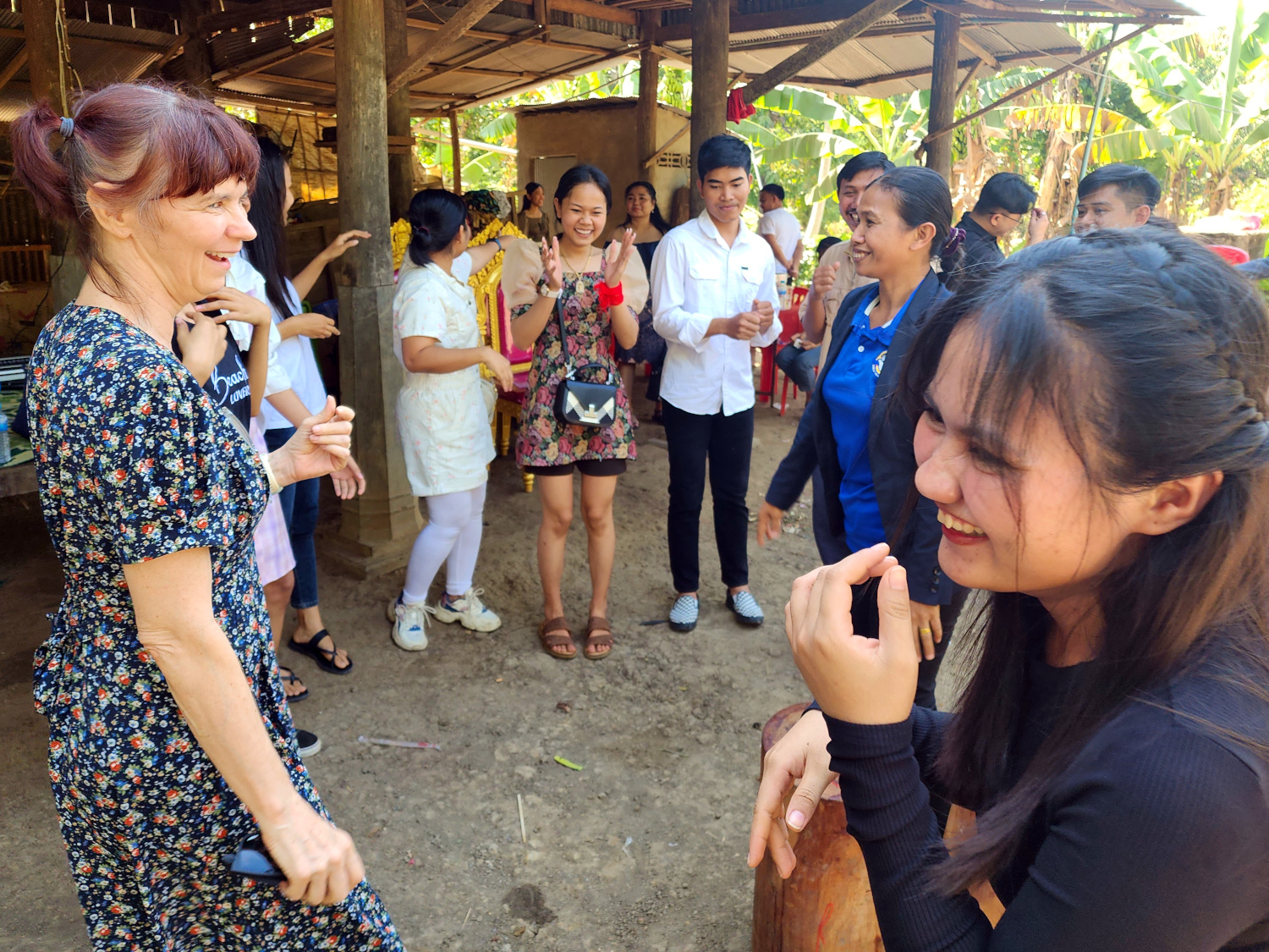 It actually began with a 2-hour drive, north of the city and way out into the sticks. Because the first stop was a wedding celebration. One of our fellow teachers had gotten married a couple of days earlier. Cambodian wedding celebrations last several days, and this part of it was at the home of family members. So as the school director, who was also present, told us, it was a chance to see the “real Cambodia”.