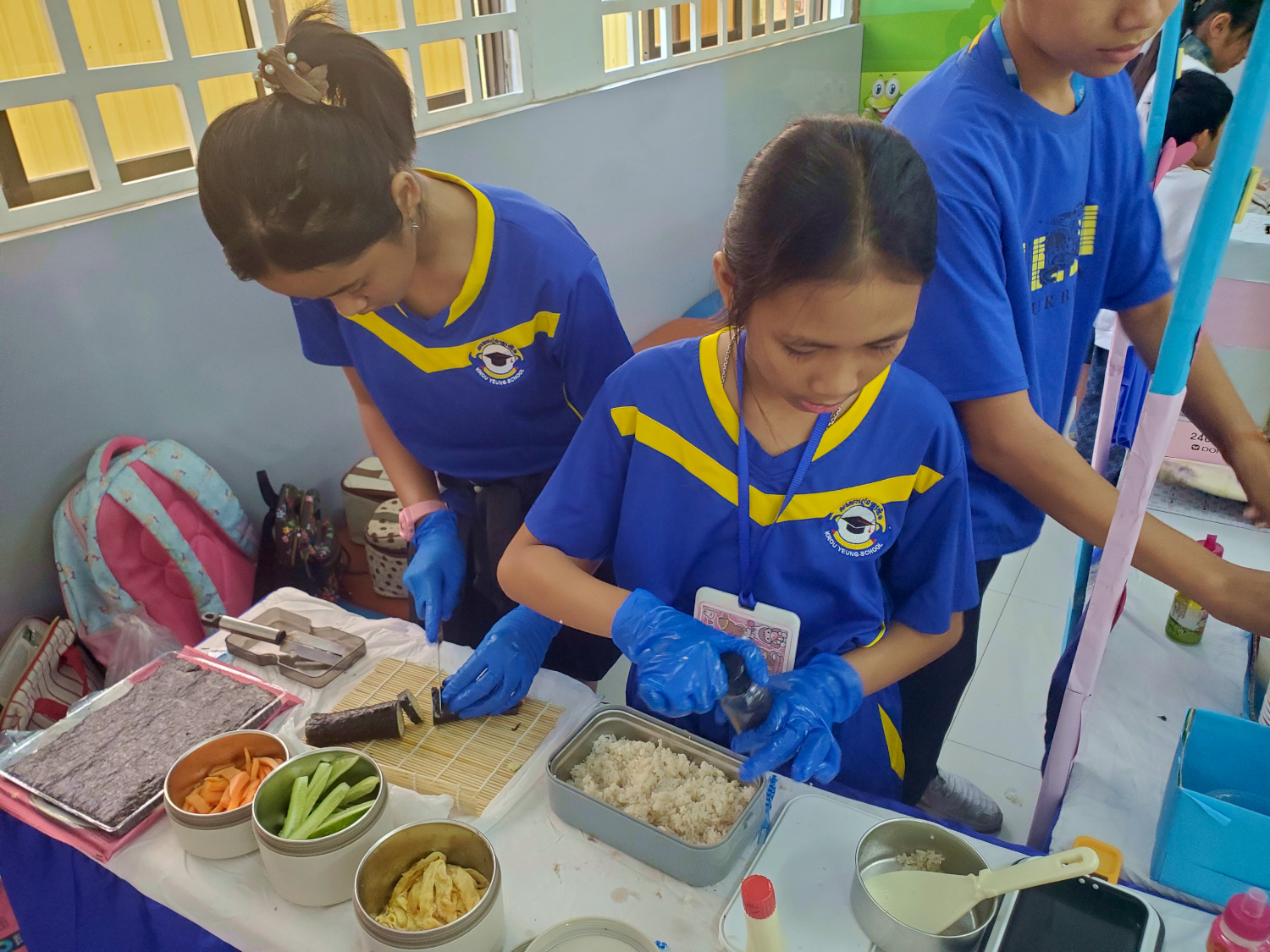 They were already familiar with Valentine’s Day, and the younger students enjoyed creating heart-shaped crafts. But the real draw on Valentine’s Day was a food fair, held in the school lobby all day long. Each of the classes from grades 3 through 6 put together a booth at which they cooked/ assembled food and sold it, with the proceeds going to charity. And best of all, these kids essentially got out of classes all day. The lower grades, however, still had classes as usual; and unfortunately, in a big glitch of planning and organizing, one teacher was stuck with both classes all day because the other teachers were participating in the food fair. Ouch.