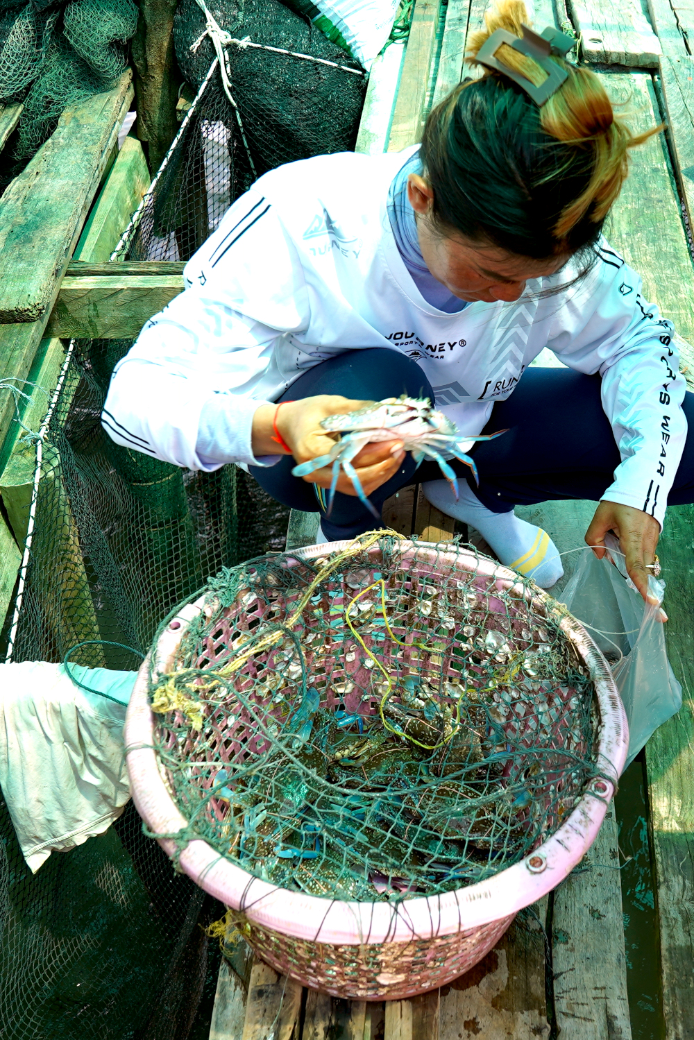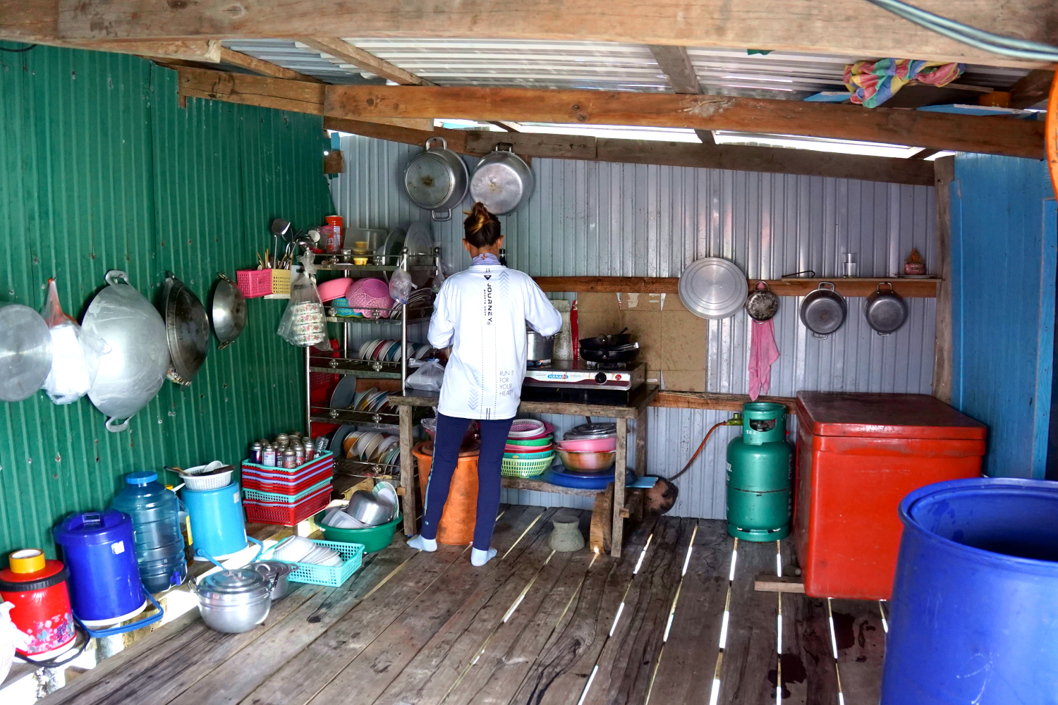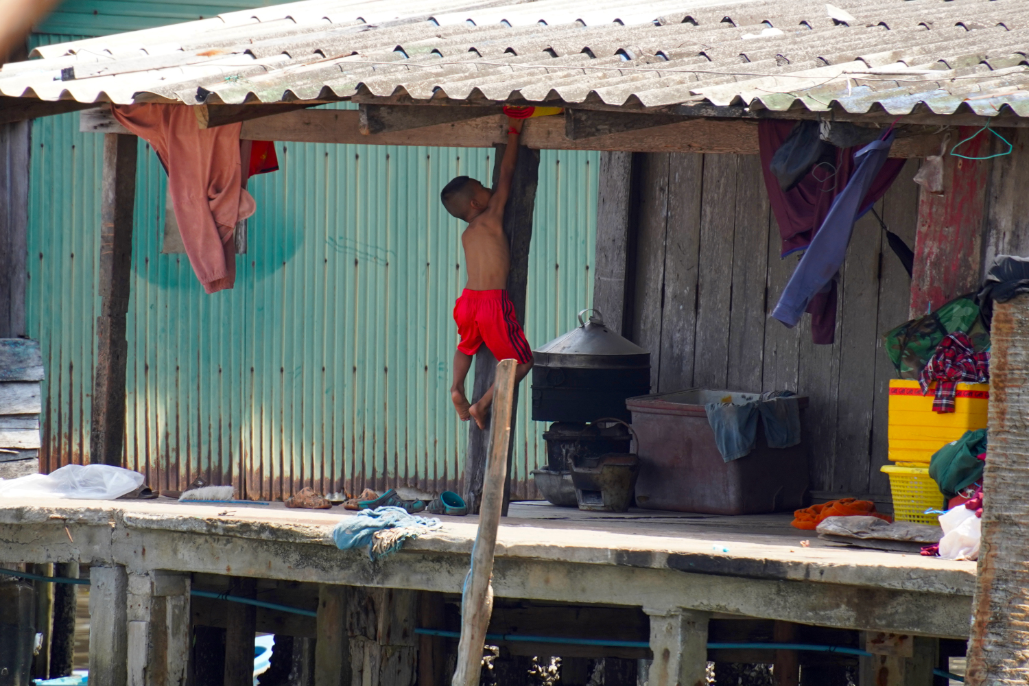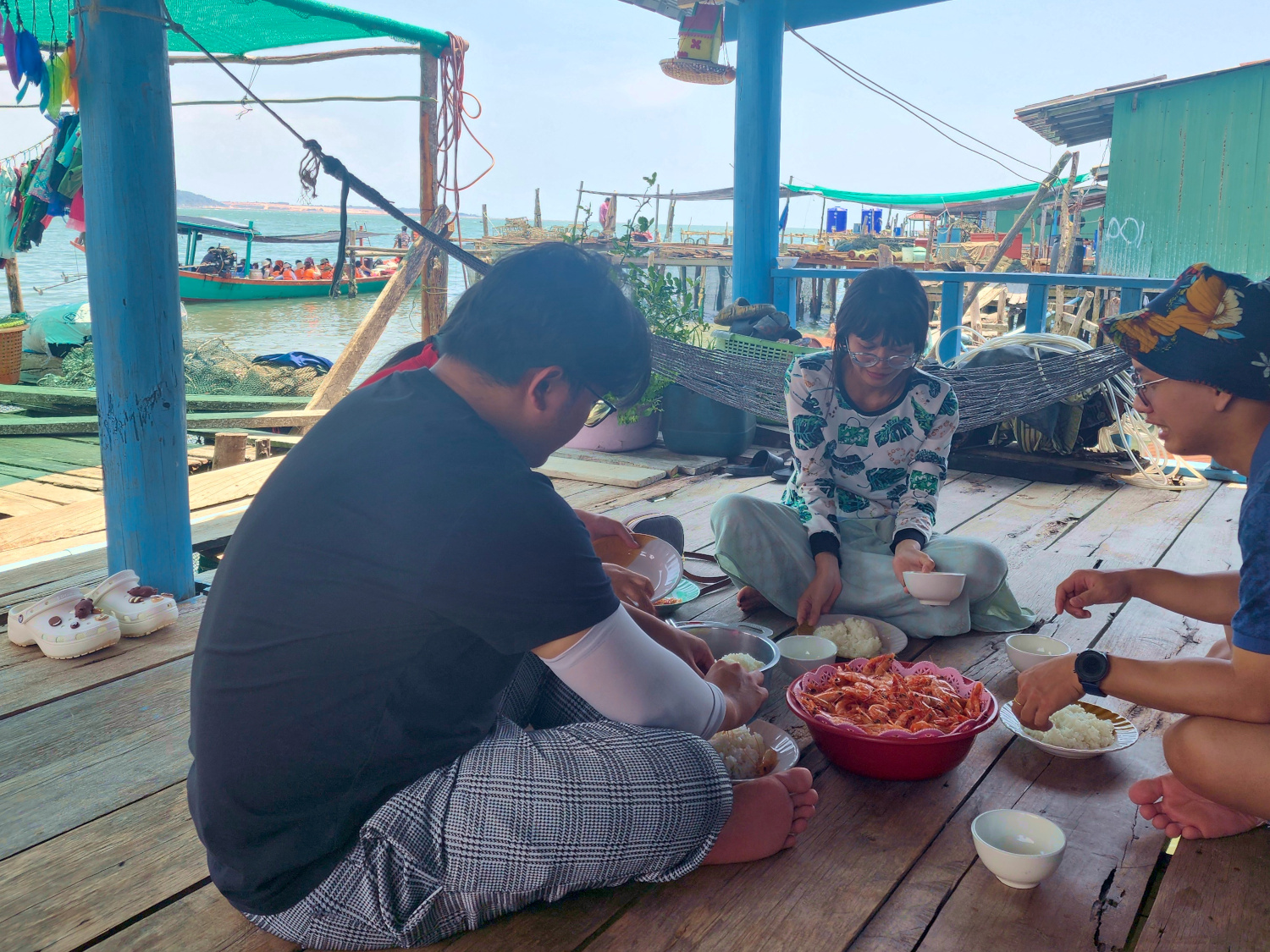 Then we had about a 40-minute ride to a pit stop at the pilot’s home, an open-air house in an antiquated little fishing village on stilts, where the “sidewalks” are simply boards stretched over the water. We felt that we were getting a good taste of the real Cambodia, the traditional Cambodia — except that for all their isolation, the pilot’s kids still played games on their phones like kids everywhere. And they slept in little tents inside the house.