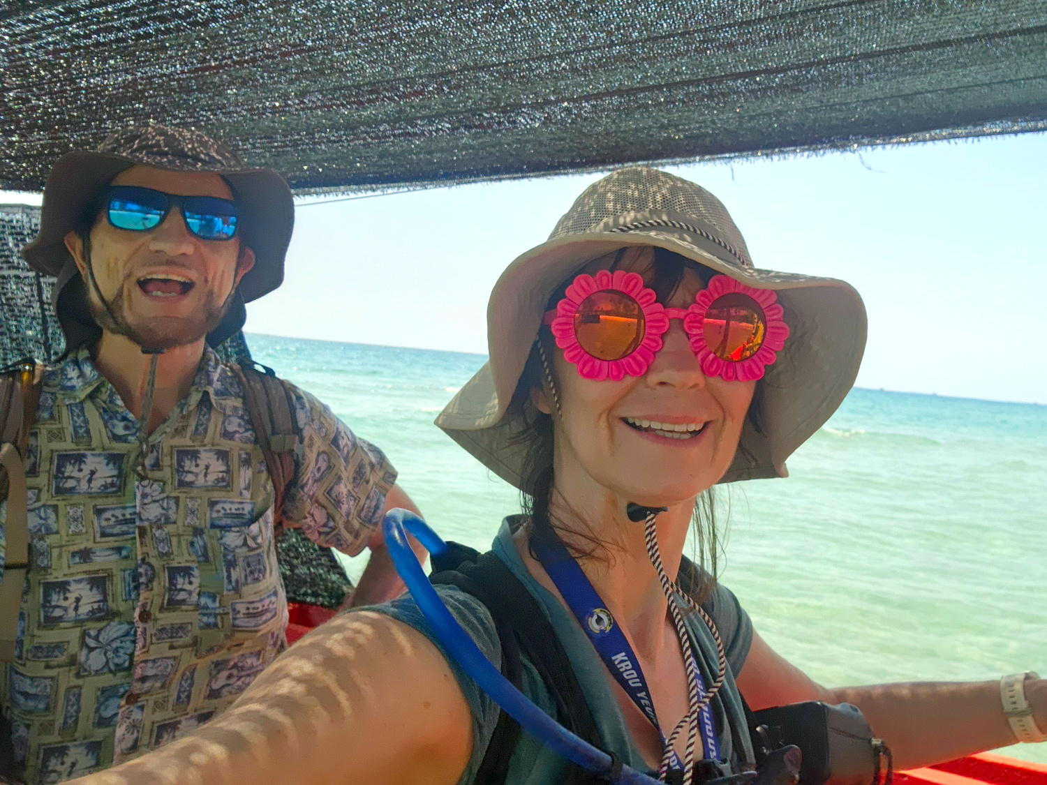 To our surprise, we encountered a hitch at the dock, because there were some government officials there checking passports — which we didn’t bring along. We do have copies of them on our phones. At least ordinarily. But we were suddenly unable to locate them. So that left getting them from an online backup — but we had no Internet service either. Finally, we were able to jump on one of the other teacher’s hot spots and supply a sufficient quantity of red tape to mollify the red tape beast. Phew. We were beginning to think our comrades were going to have to abandon us at the dock and go camping without us.