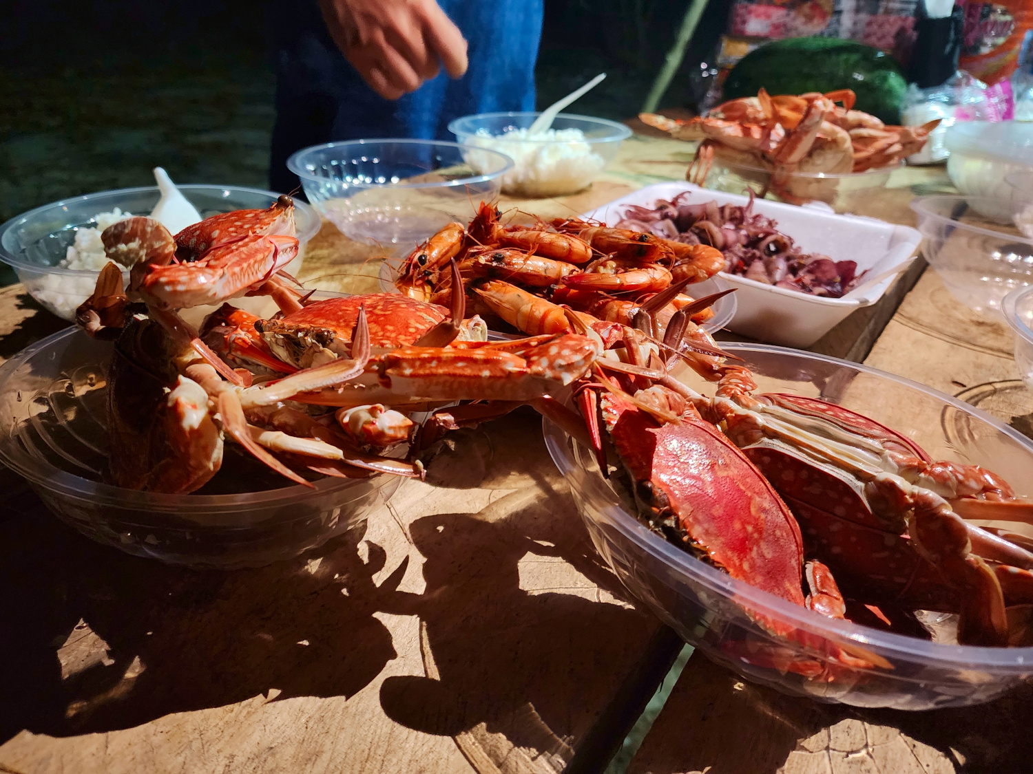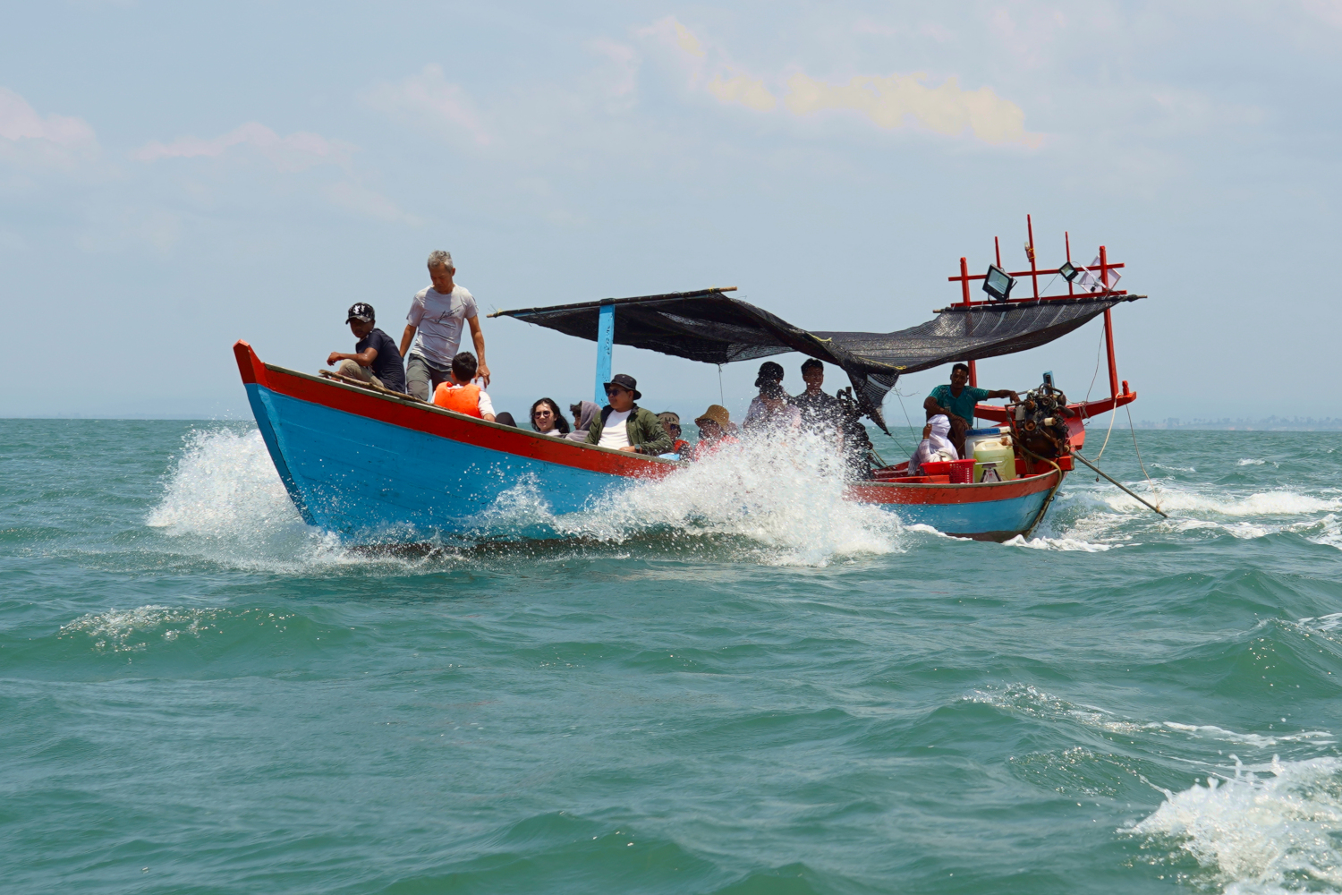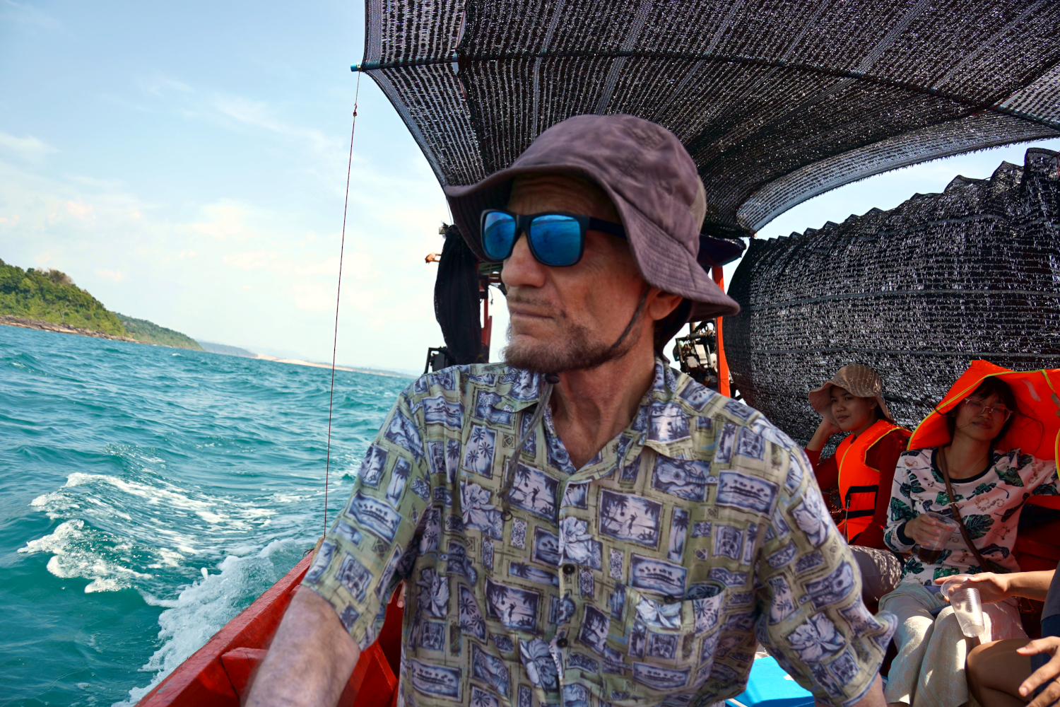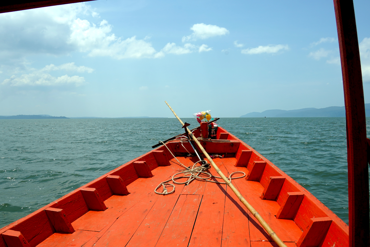 And then it was back into the boat; getting into and out of it required a bit of athletic skill, because there was no ramp, no set of stairs; you just climbed up to get out and hopped down to get back in. Then on for another half hour or so to the island of Koh Kong (“koh” means island) and the beach where we were to camp.