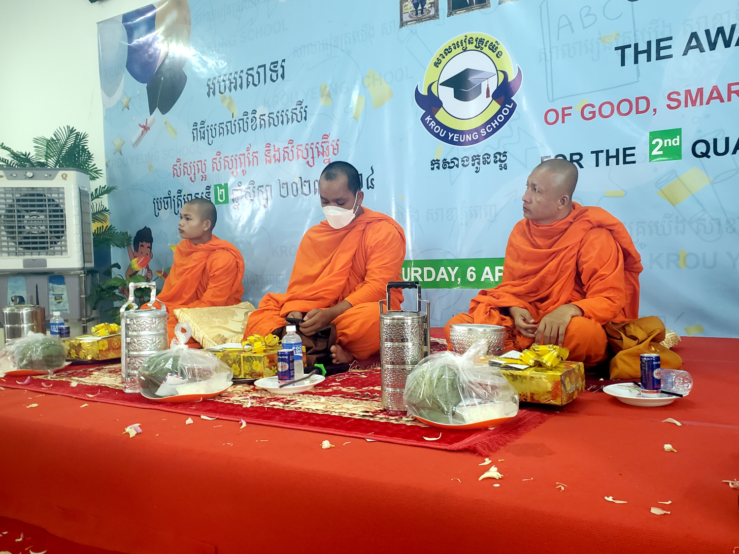 On April 6, Krou Yeung School held a special event for everyone involved with the school, including parents. Just in time, Kimberly finally received her brand new tailor-made teacher’s uniform for which she’d been waiting for quite a while. The occasion was the beginning of Khmer New Year, but the school also decided to combine it with the quarterly awards ceremony, a couple of weeks late after the end of the Second Quarter.