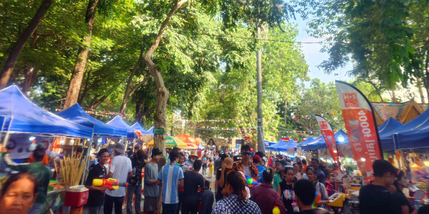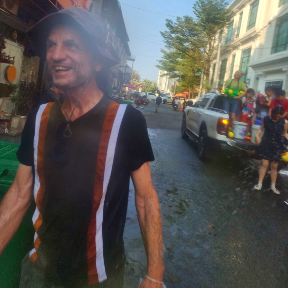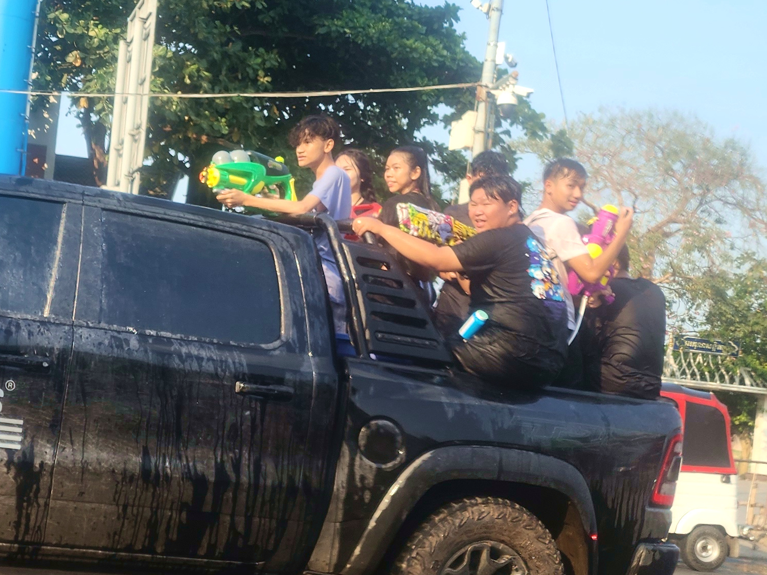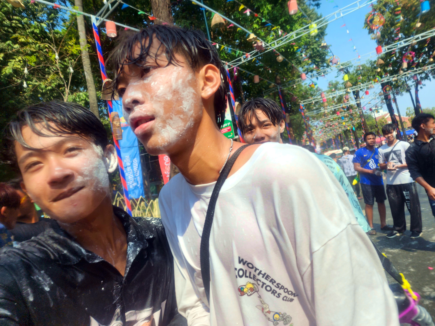 It was an excellent choice, because it turned out that just about all the people who had not left town had gathered in that area on those two days (and probably the other days as well) for a big New Year’s party. There were music, dancing, food and water — not just water to drink but water to douse other people with.