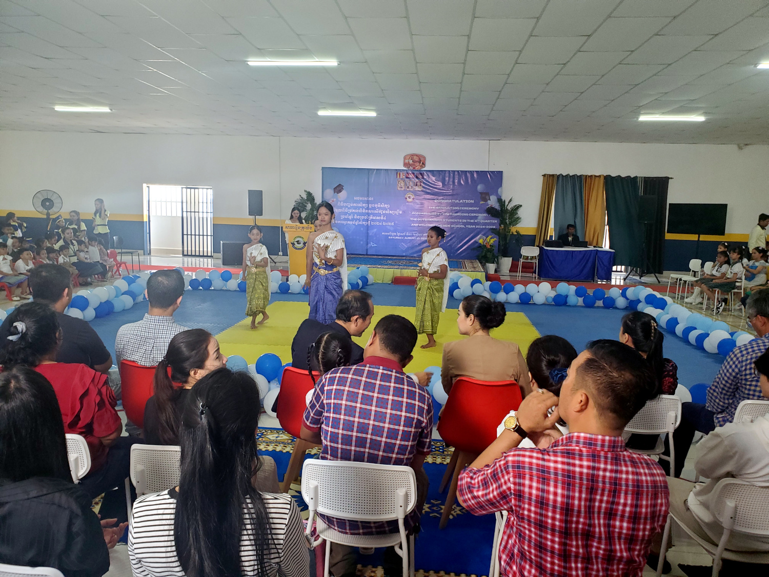 At the graduation ceremony, which was heavily attended by parents, and was therefore held in the gym instead of the auditorium, Kimberly led groups of Kindergarten and Grade 6 students in singing a song — another milestone to add to her resume.