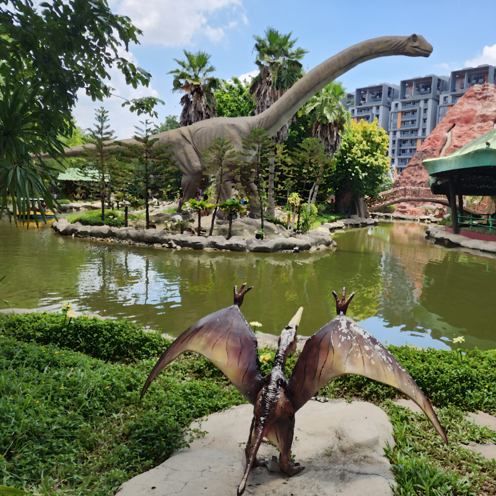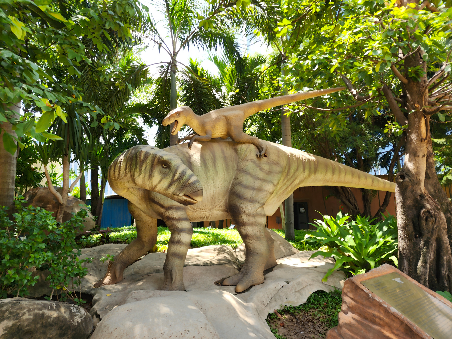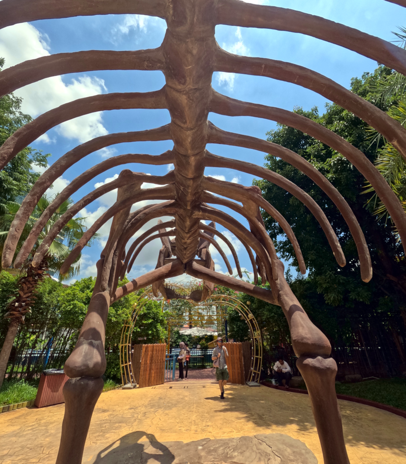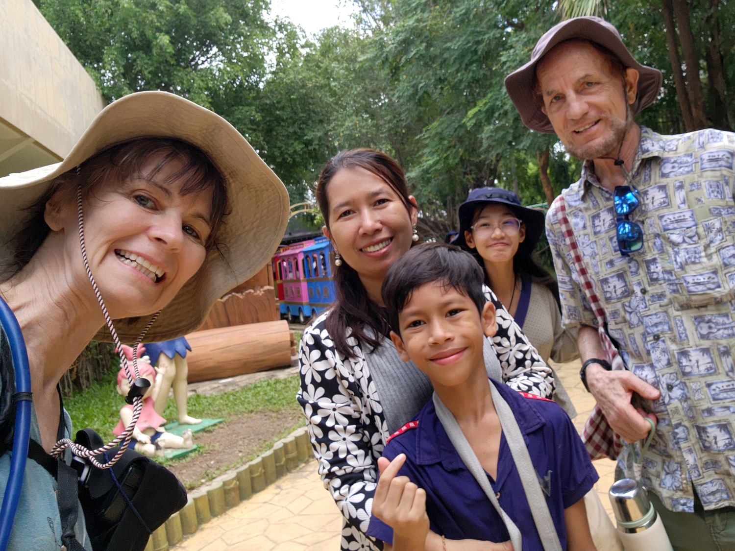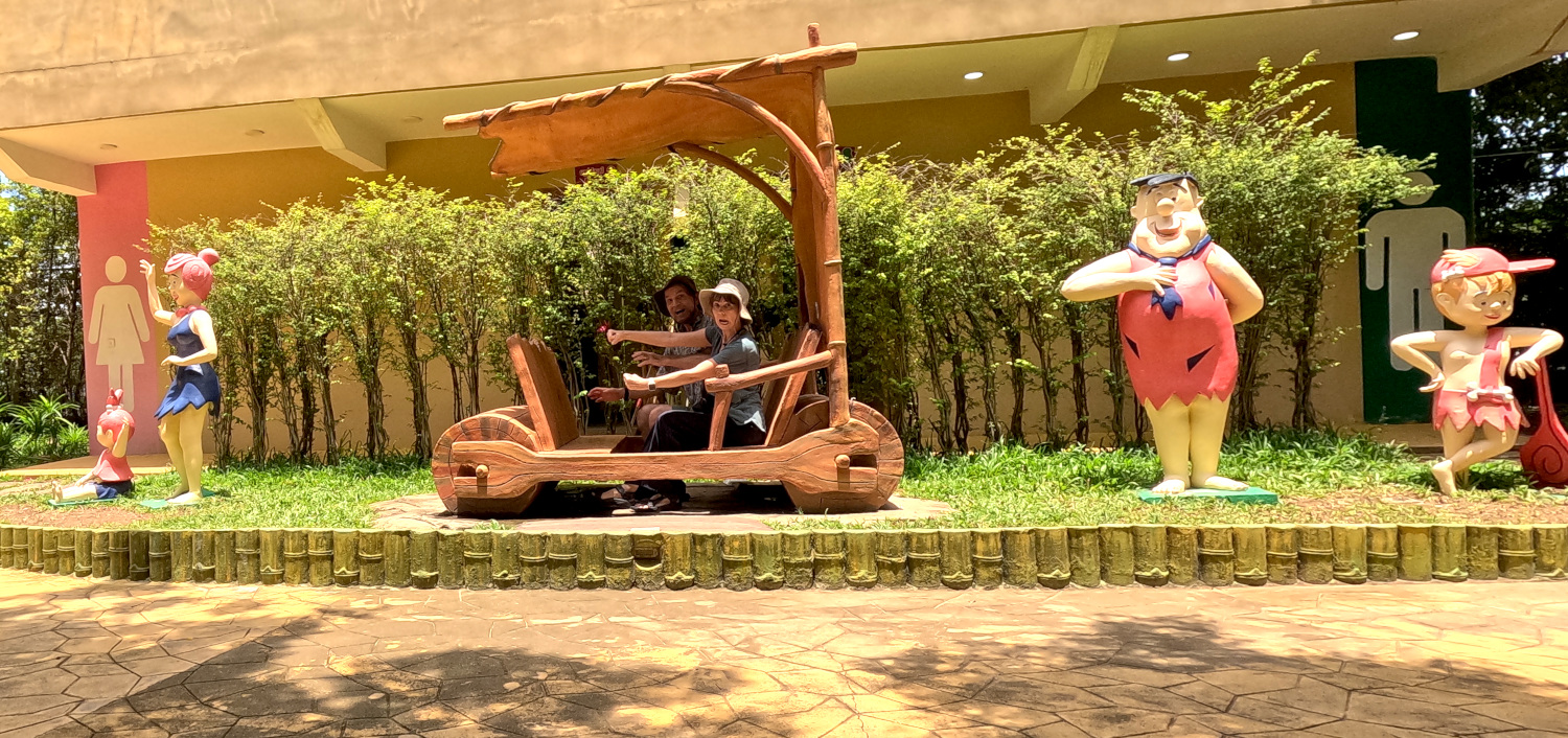 Except for the dinosaurs. They’re all over the place, about 40 of them, and you can see them without charge just by entering the park. They’re life-sized and detailed quite accurately (at least so far as scientists can determine). And some of them move courtesy of animatronics. There’s also a photo-op exhibit of characters from The Flintstones. (Which is also unintentional cultural bastardization — such whimsical pop entertainments have given some people, even adults, the impression that dinosaurs coexisted with humans). We wondered if Cambodian kids were even familiar with The Flintstones, considering how old it is. Heck, we’d even wonder if American kids were familiar with it.