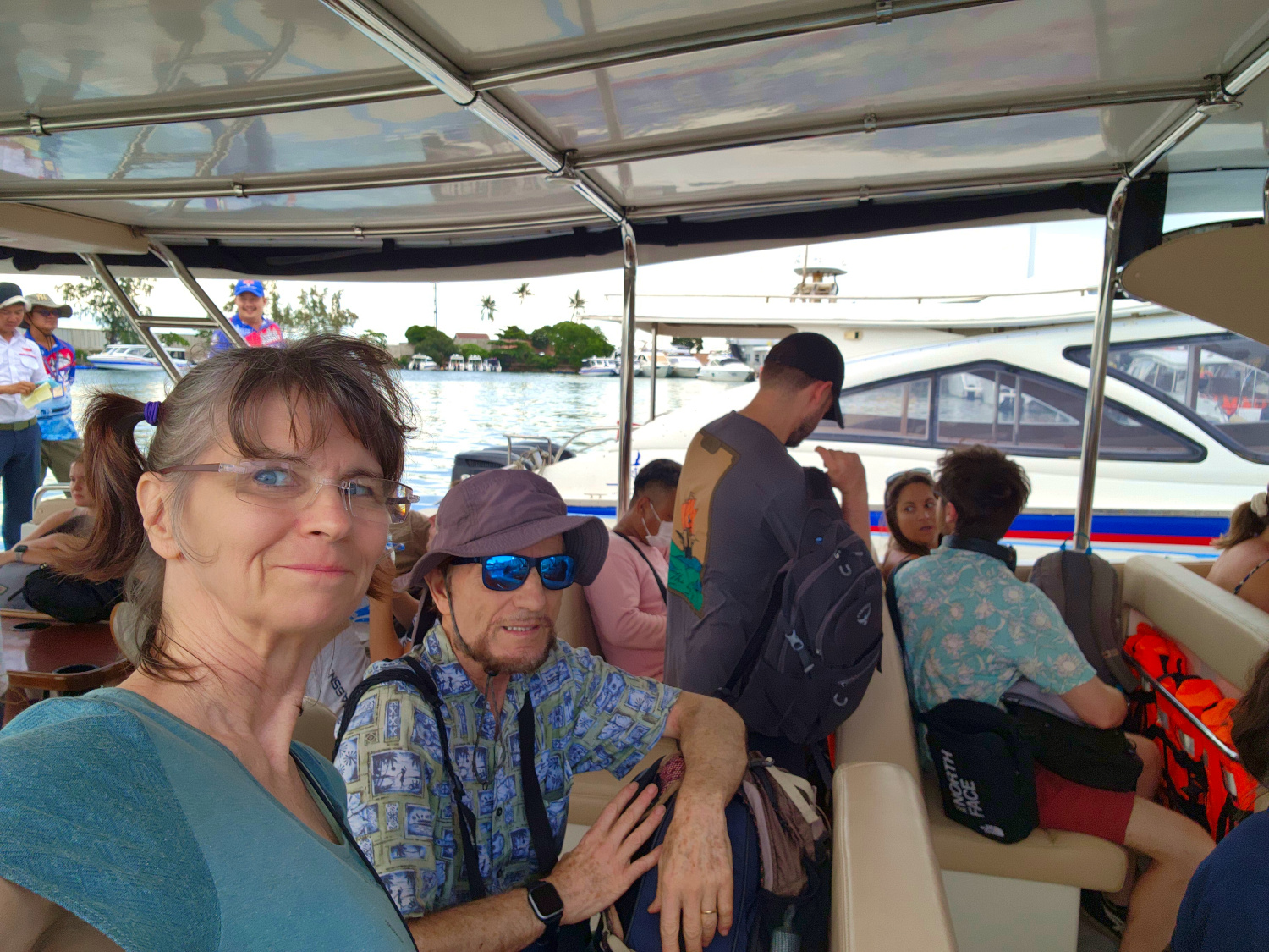 The boat is as packed as our backpacks –which get stacked with the bags of other passengers on the bow of the deck (the floor in the front for us landlubbers), which causes us some concern because Dennis had his computer packed in his, and he realized it was not going to be handled with princess delicacy. Fortunately, it was well protected this time. But we realized that we should not put computers in the big bags in the future, but instead keep them with us in our small packs so we can determine for ourselves how they get handled. All of this time traveling, and we’re still learning.