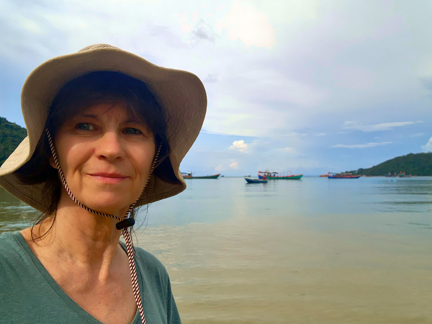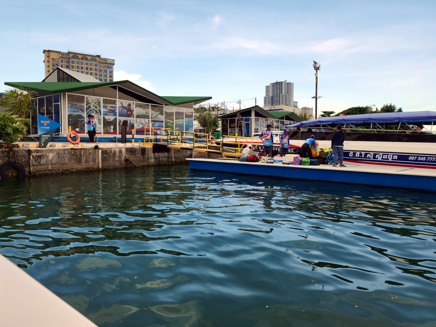 The train’s destination is the seaside city of Sihanoukville, which we visited previously with a group of fellow teachers. But the city is not our final destination; it’s just our jumping off point. Because we have our sights set on an island. So from the train station, we catch a tuk-tuk to the ferry terminal, where we buy our tickets and are told to go to Pier 3. But the piers are not well labeled, so it takes us some time to sort out just which one Pier 3 is.