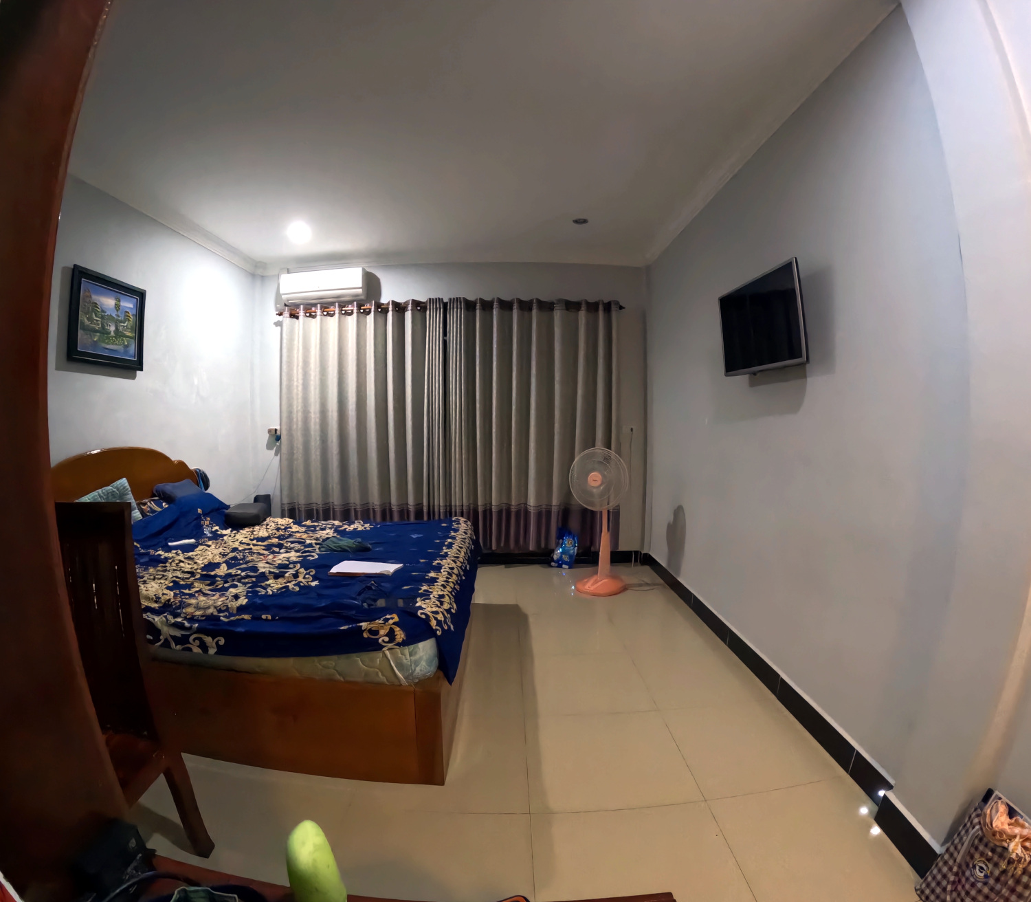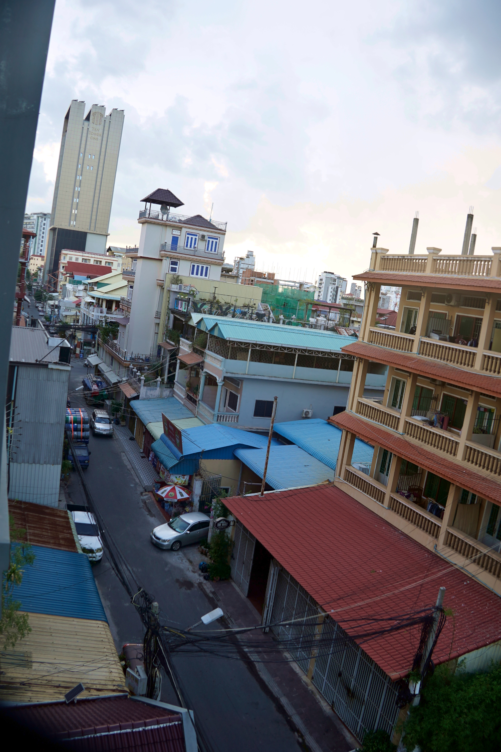 We occupied a studio apartment with a big, comfortable bed. But the only desk was in the bedroom/ living room, and we could not access wi-fi there. For that, we had to be in the kitchen, a room which got considerably warmer. But we did have two fans, and an air conditioner in the bedroom/ living room which we tried to use minimally, as we paid extra for utilities (including hot water for the shower, which not all Cambodian residences have). There were no windows except for the door to the balcony (which was equipped with a washing machine — a luxury). Sometimes we’d get some ventilation by opening that door and the door in the kitchen leading to the hallway, getting a cross breeze going. But one day a bird flew in, perched on the TV, and flew back out. Yes, there was a TV in the apartment, but we never turned it on during the entire year we lived there. Some kinds of poison are not that hard to avoid.
