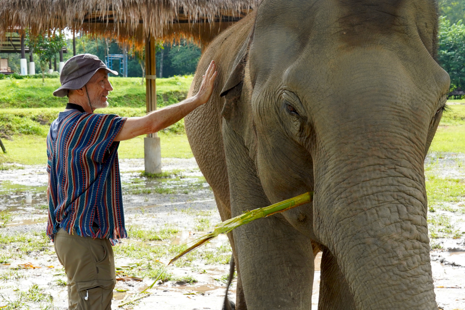 Having already visited two elephant sanctuaries — one in Cambodia and one in India — we were less than impressed. Well, we were impressed but somewhat for the wrong reasons. The elephants in those two facilities were kept chained up, so they didn’t seem particularly happy, as if what they really needed refuge from was the refuge itself. But being within range of another one in Thailand, we couldn’t resist having another go at it. Maybe the third time would be the charm.