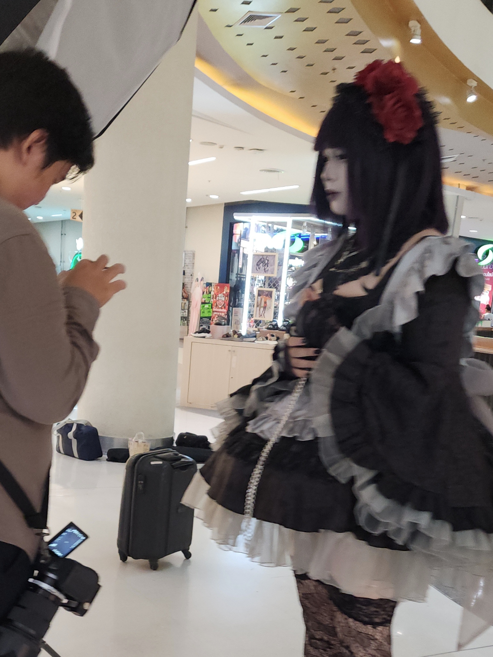 The mall is quite crowded today, more so than usual. There’s some kind of special event going on, for which young people cosplaying as Manga characters are all over the place. Kimberly manages to find a pair of shoes she likes and buys them, but we are not able to locate the AC adaptor.