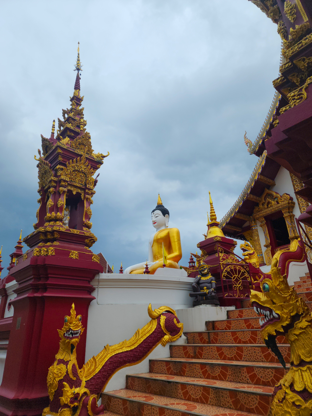 First up is Wat Tung Yu, which is small but full of intricately carved details. One of its most arresting features is the huge pair of naga serpents guarding the entrance, looking as if they’re poised to devour anyone who breaches temple etiquette. Nagas are mythical serpents who are part human, and guard the Buddha and his teachings. They are also connected with water (especially rain) and prosperity. Inside are quite a number of distinctively different carved and jeweled Buddhas, which may be why the nagas are on alert.