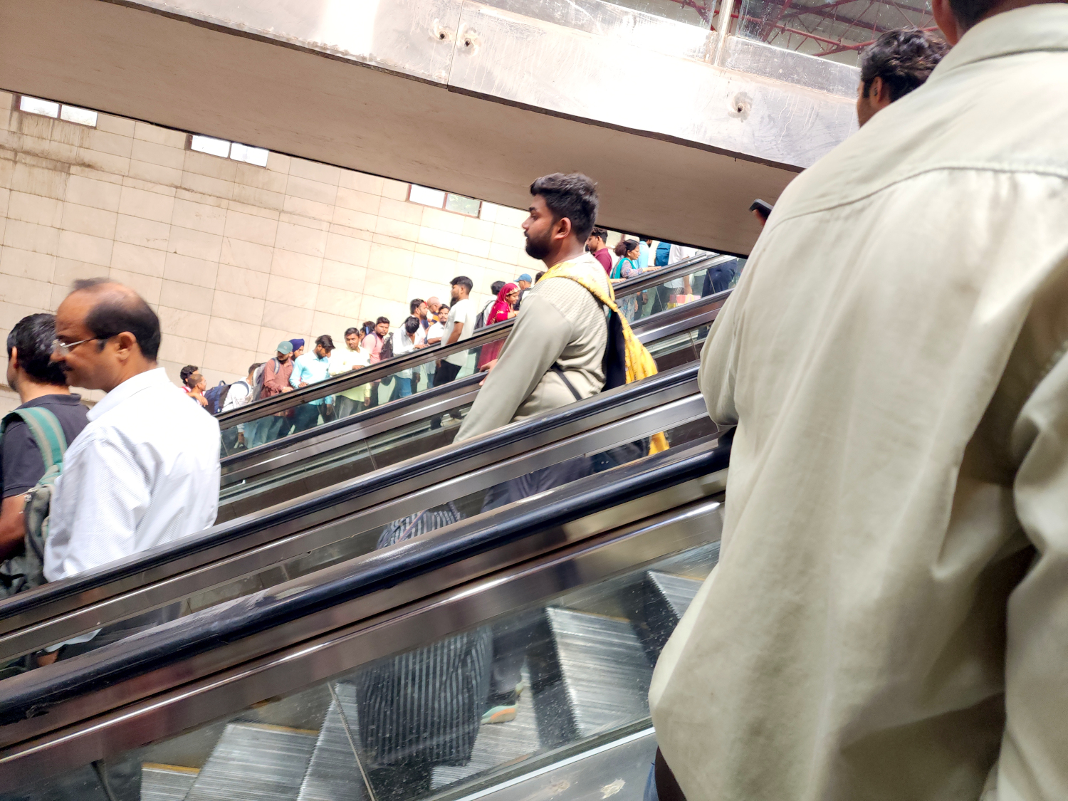 After landing, we have a quick and painless immigration process though we have to deal with some rather rude and pushy passengers. Then we catch a metro, which is every bit as crowded and hectic as we anticipated. We have to catch three trains, standing in line for a ticket each time, and going through baggage screen each time.