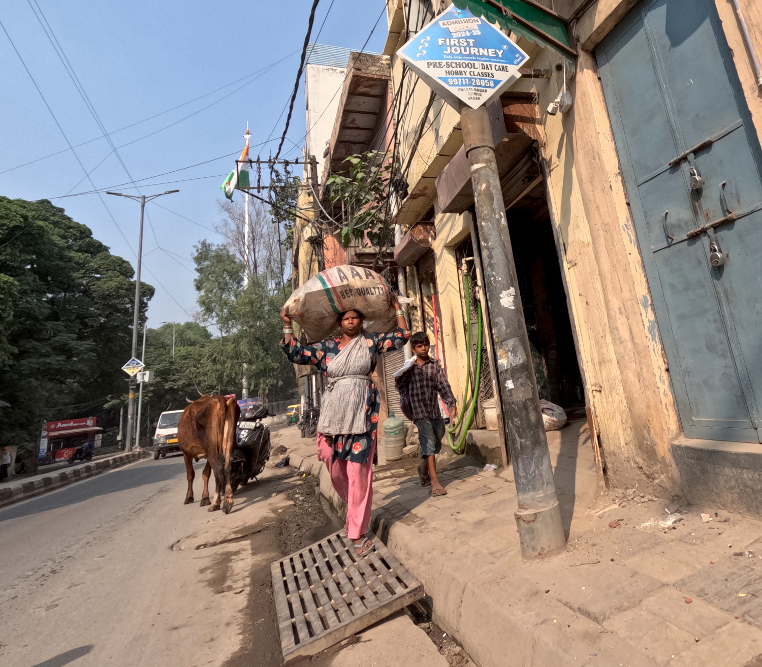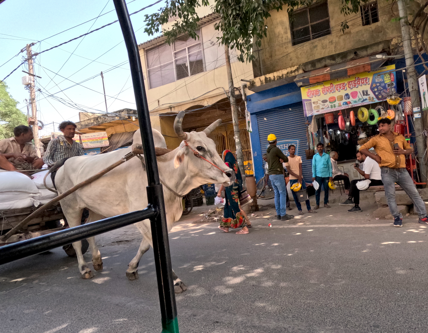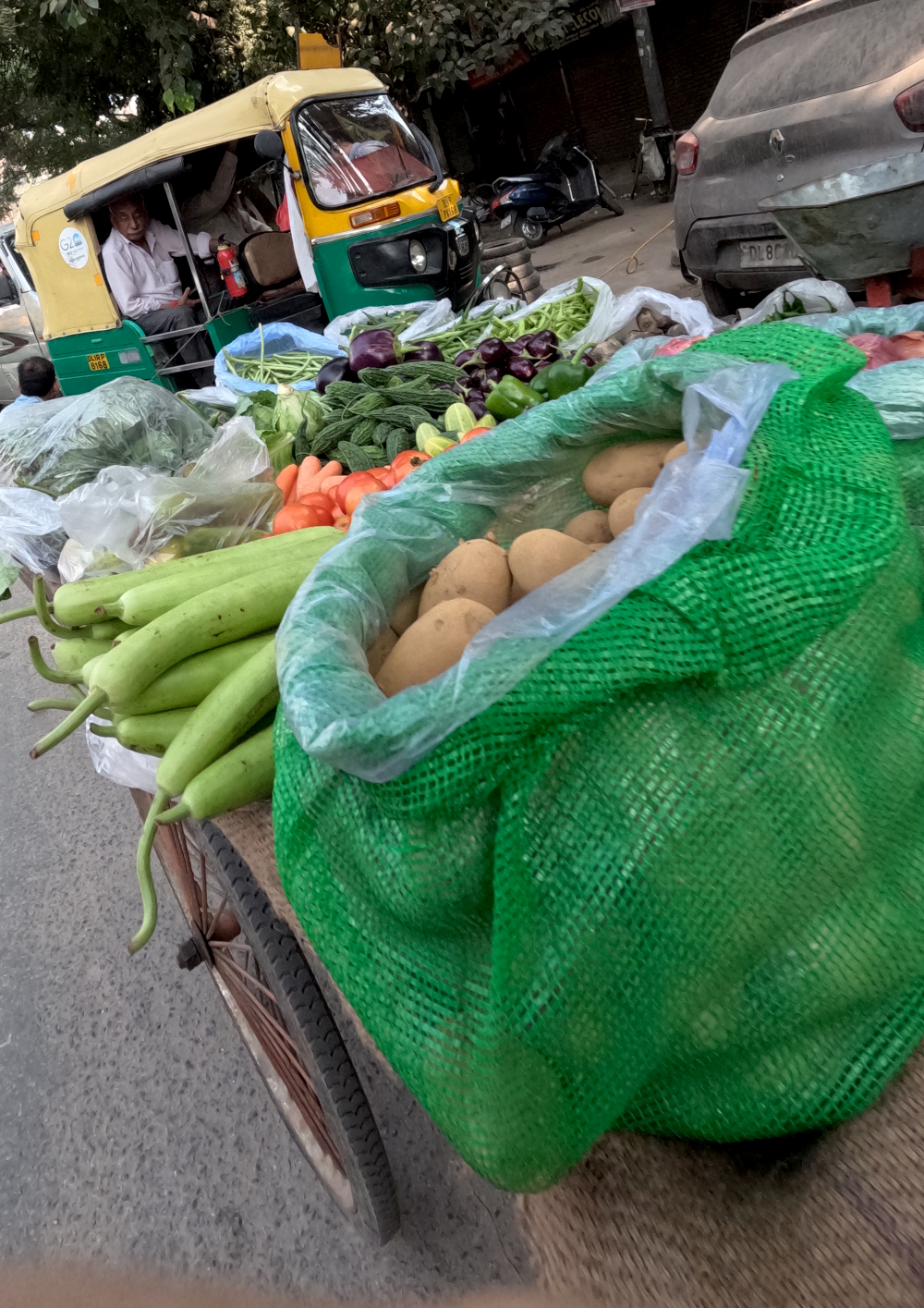 Walking back a different way, we discover a marketplace where we can buy produce. The vendor takes our photo, the first celebrity treatment we’ve received — it happens constantly in India’s smaller towns.