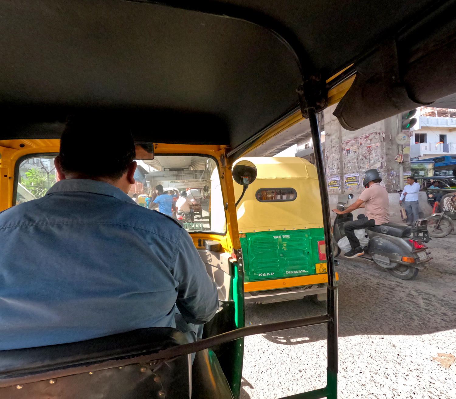 The next morning, we catch a tuk-tuk to a Hypermart. The driver is rude and surly, and doesn’t want to take us all the way there — he drops us about a block away. In the store, we find most of the things we are seeking — while, as usual in India, dealing with overbearing store employees who try to push you toward buying certain things (in a store we once went to, we literally had a fellow wanting to do our shopping for us). The ride back home is better, with a much more agreeable chauffeur.