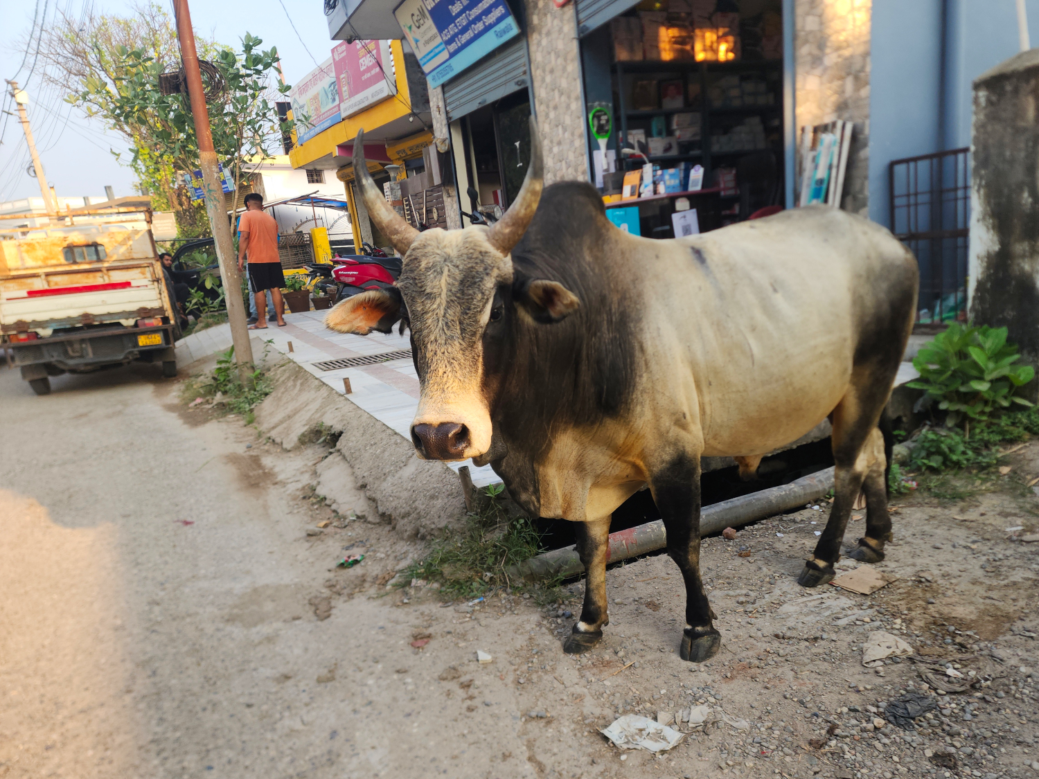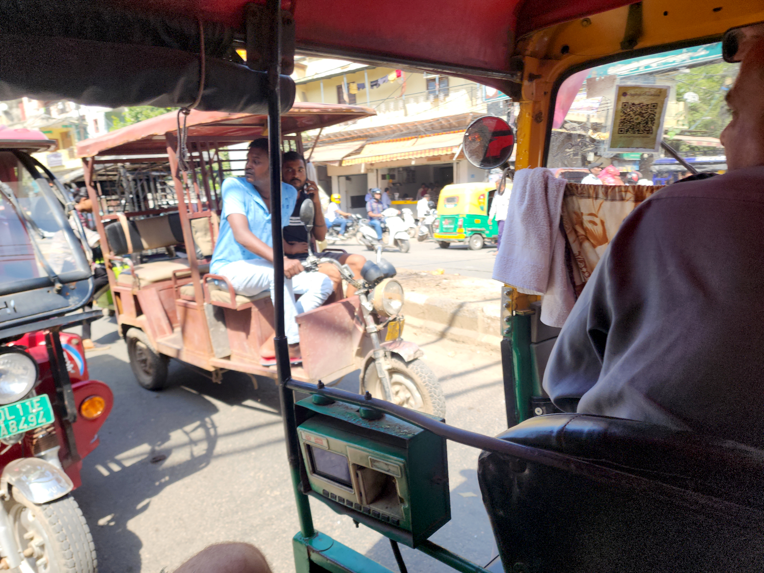 But when we book a driver on the app, it quotes us a much higher price (500 rupees) to take us into the city than we’d been quoted the previous evening to bring us here. (This, we were to learn, is standard — local drivers want to charge you much more to take you into town, especially if you are a foreigner.) So we talk to the security man at the gate — no easy task, since his English is quite limited — and he then calls a driver he knows and arranges a ride for us for the much more reasonable fare of 400 rupees.