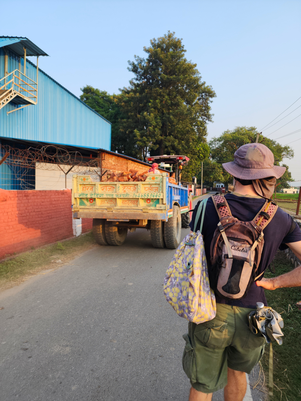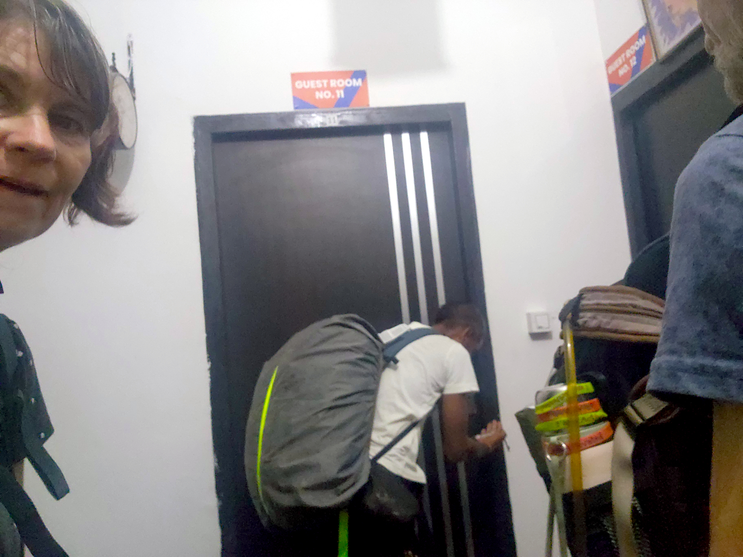 Finally we figure out that’s where he is, and hustle down to meet him, dodging cows and their pies as we go. We load our things into his tuk-tuk, and as we are doing so, it starts rolling backward. and we have to hold it. We laugh, considering this all just part of the experience.