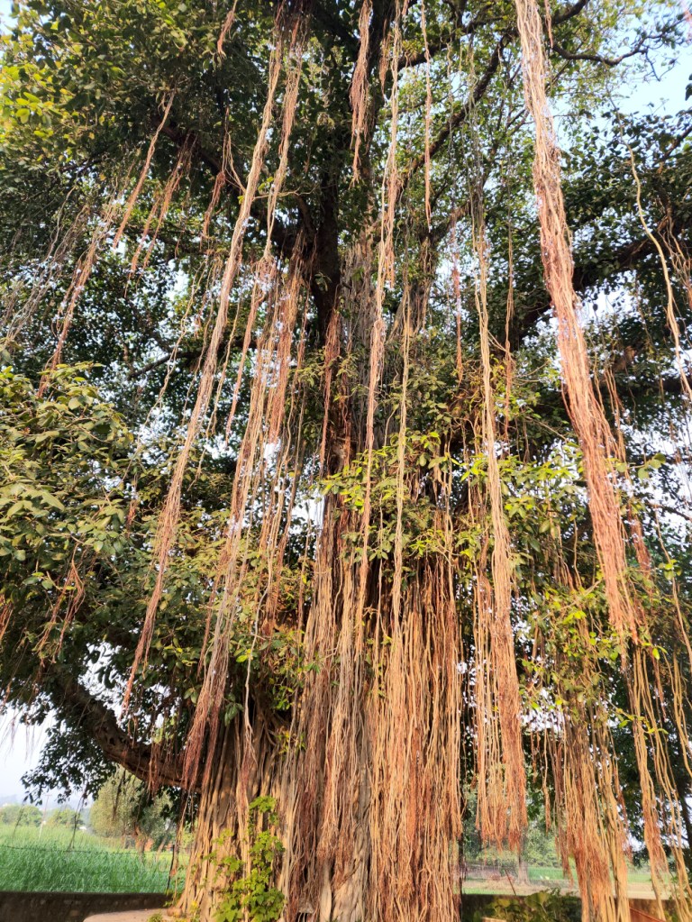 Who was Maa Amandmayee? She was a renowned mystic and spiritual teacher, revered all over India and reputed to have been the incarnation of a Hindu god. People would come from miles around to hear her discourse. And one of the places they came to hear her was right here — she maintained quarters here for a time, and would deliver sermons out under the huge, splendid tree — which is perhaps 3 or 4 centuries old. (See sidebar for more about her.)
