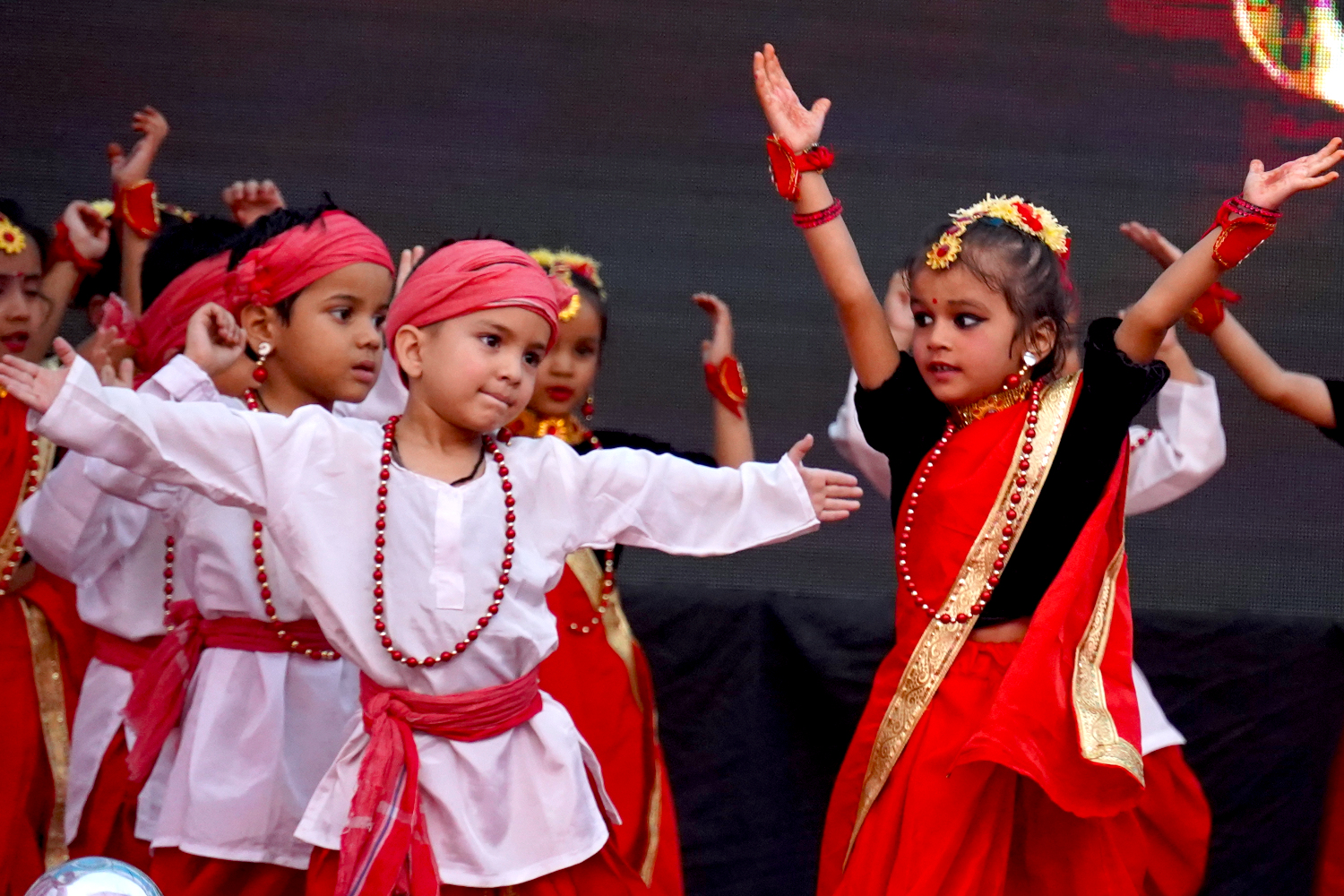 PICTURED: Upper Kindergarten traditional dance (Kimberly helped the emcees improve their English, but they were already great)