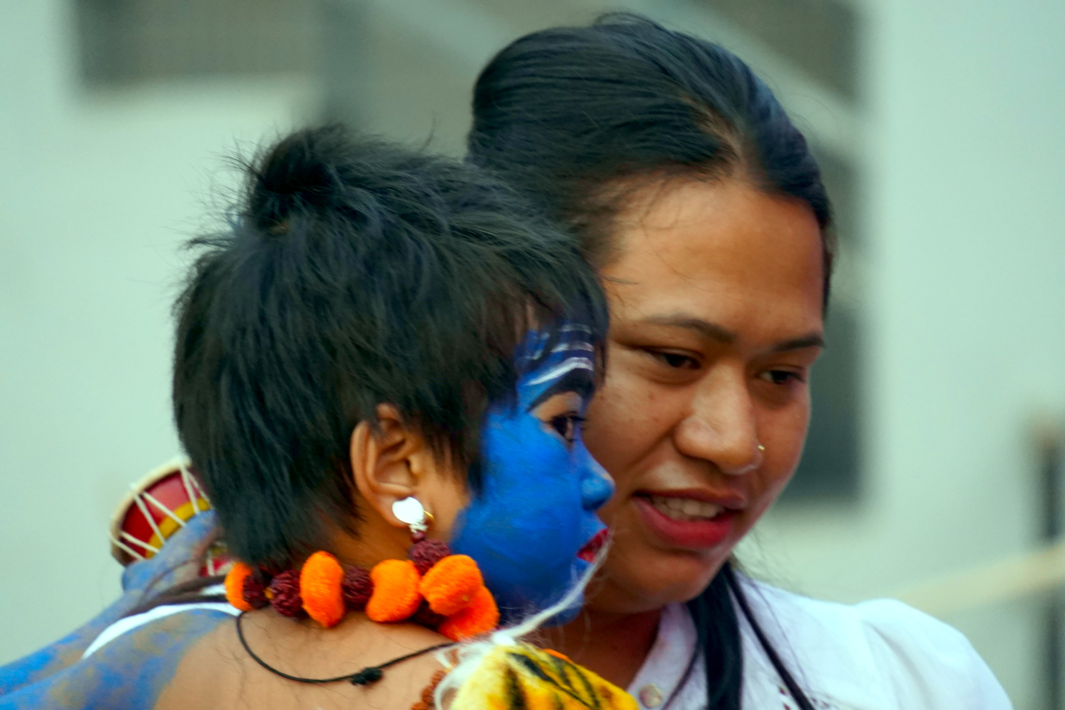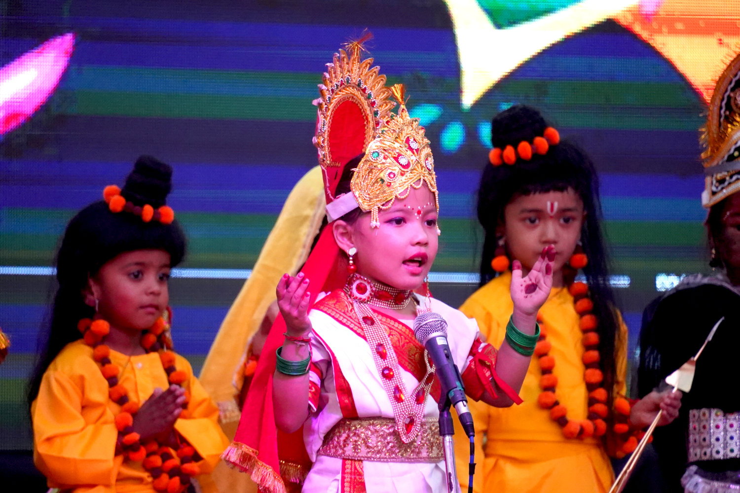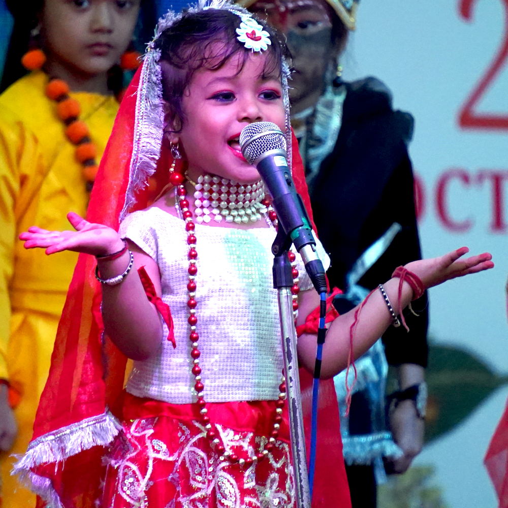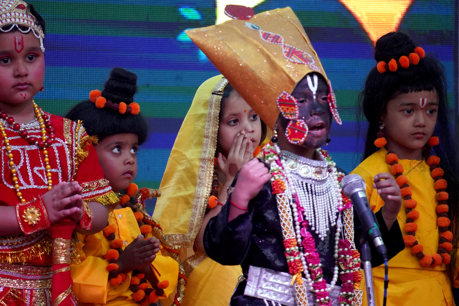 PICTURED: Kindergarten dressed as Hindu gods and goddesses giving speeches about their characters. The blue one was sick and her mother took her home as soon as she was done. Parents whipped out their cameras to capture the moment, as parents all over the world are prone to do.