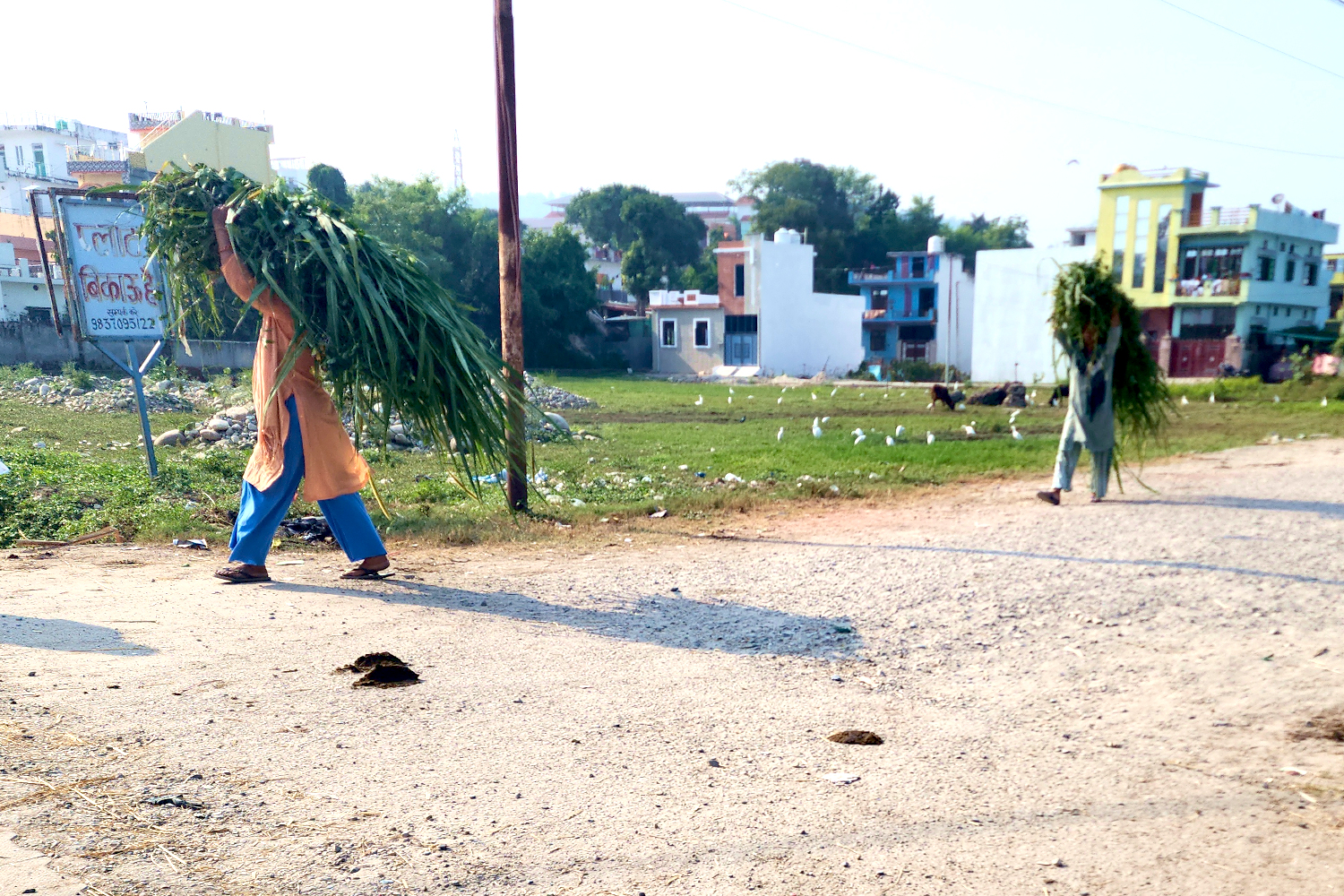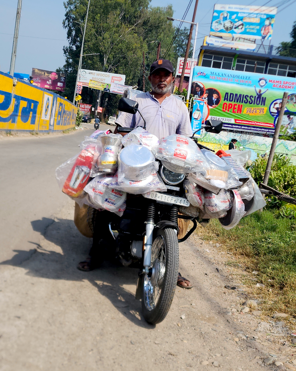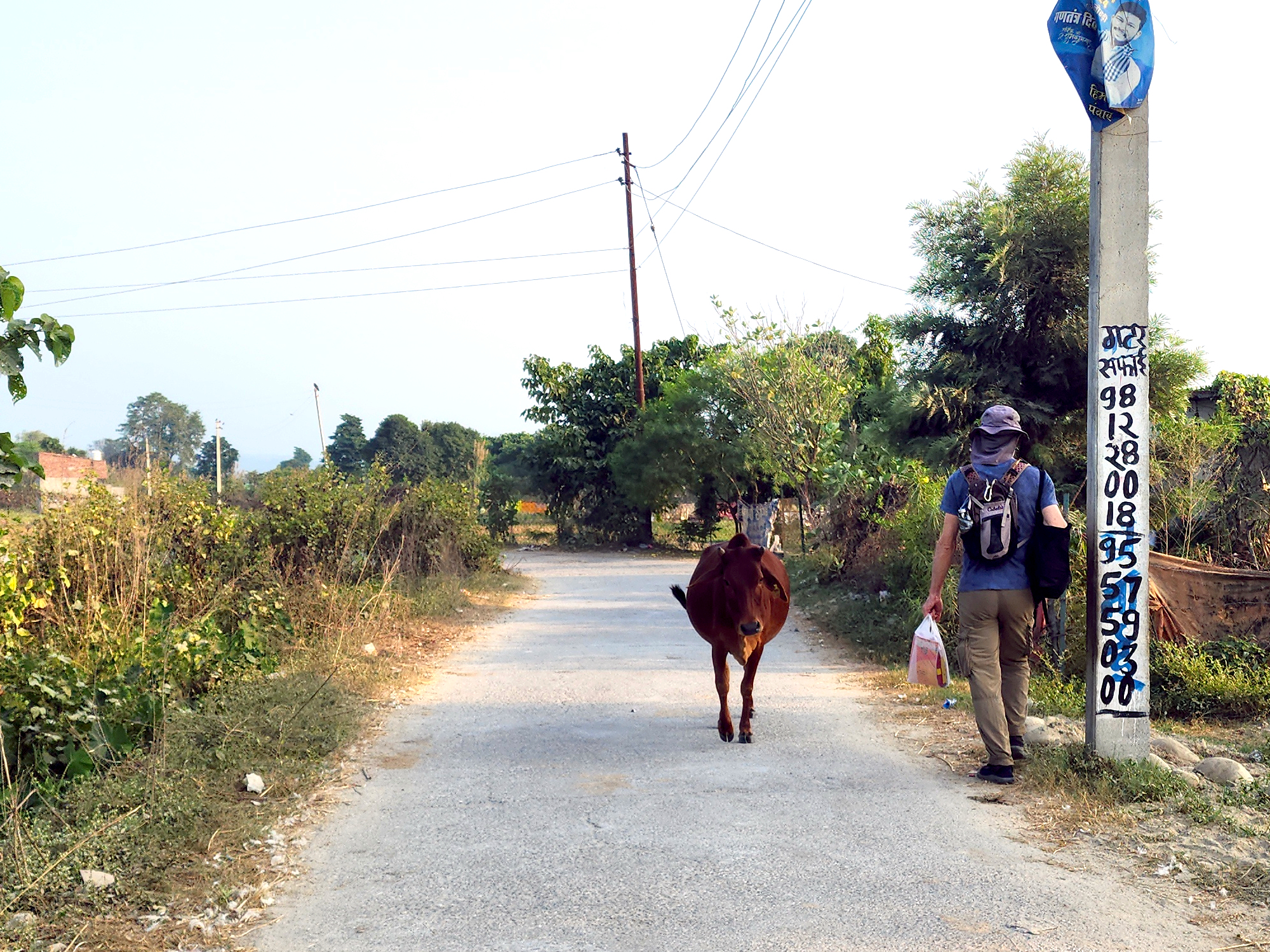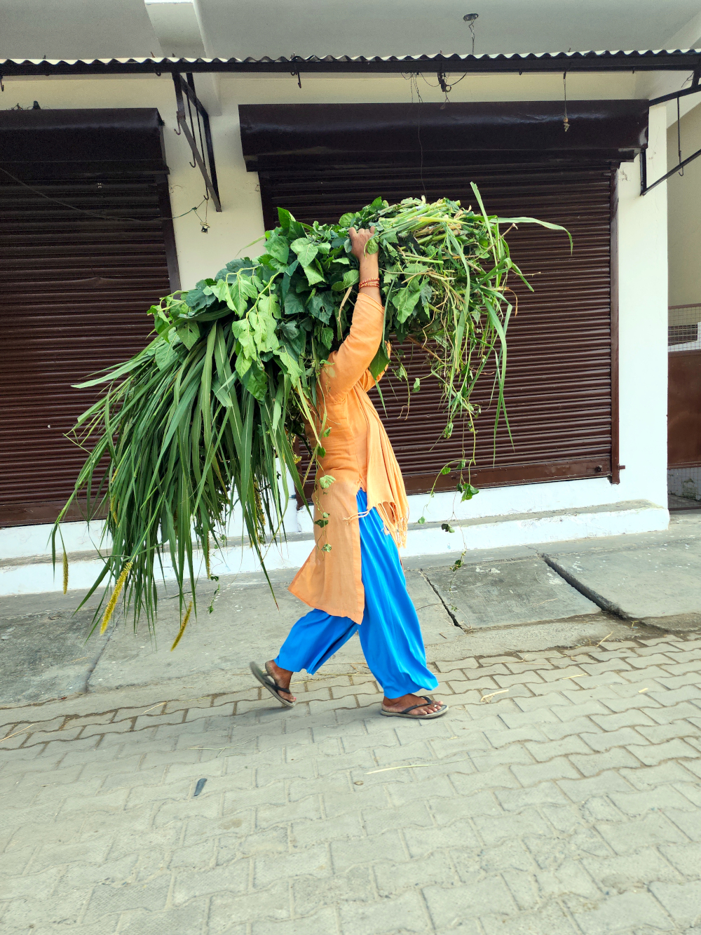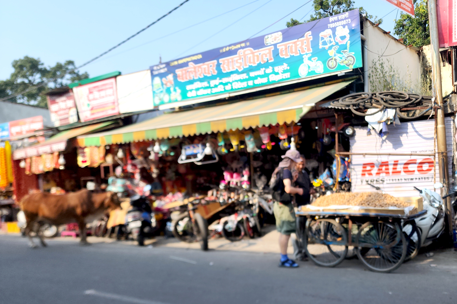 Sometimes on her lunch break, she dashes across the road to another little supermarket, which has a limited inventory, but is not bad as far as local stores — it even has some things, such as tofu, that can’t be found anywhere else in Raiwala. And it sometimes saves us the trouble of walking the two miles from our apartment to R & R.