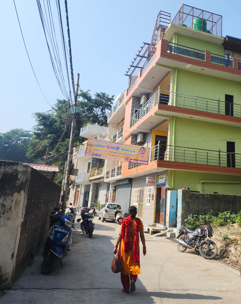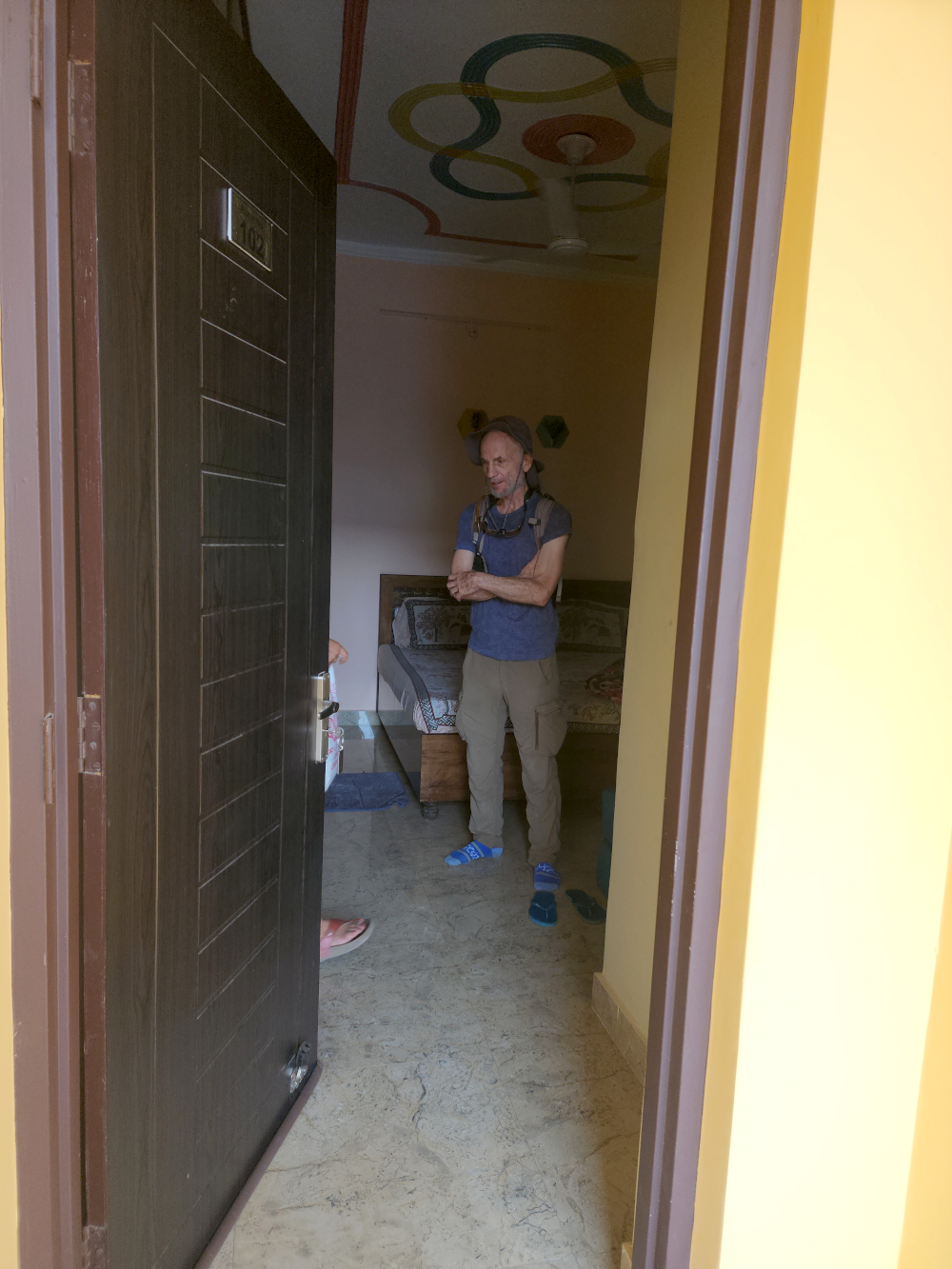 From the drop-off point it’s about a mile walk to our homestay, where we have to wait about 15 minutes, even though we’ve notified the hosts by text, before someone comes to check us in. And when she does come, she takes a very very long time to go through the process, making copies of our passports and having us fill out Form C. (That’s a form the Indian government uses to keep tabs on foreign visitors. Theoretically, we have to do it for every place we stay, and the hosts have the responsibility to submit it; but quite often they’re rather lax about it.)