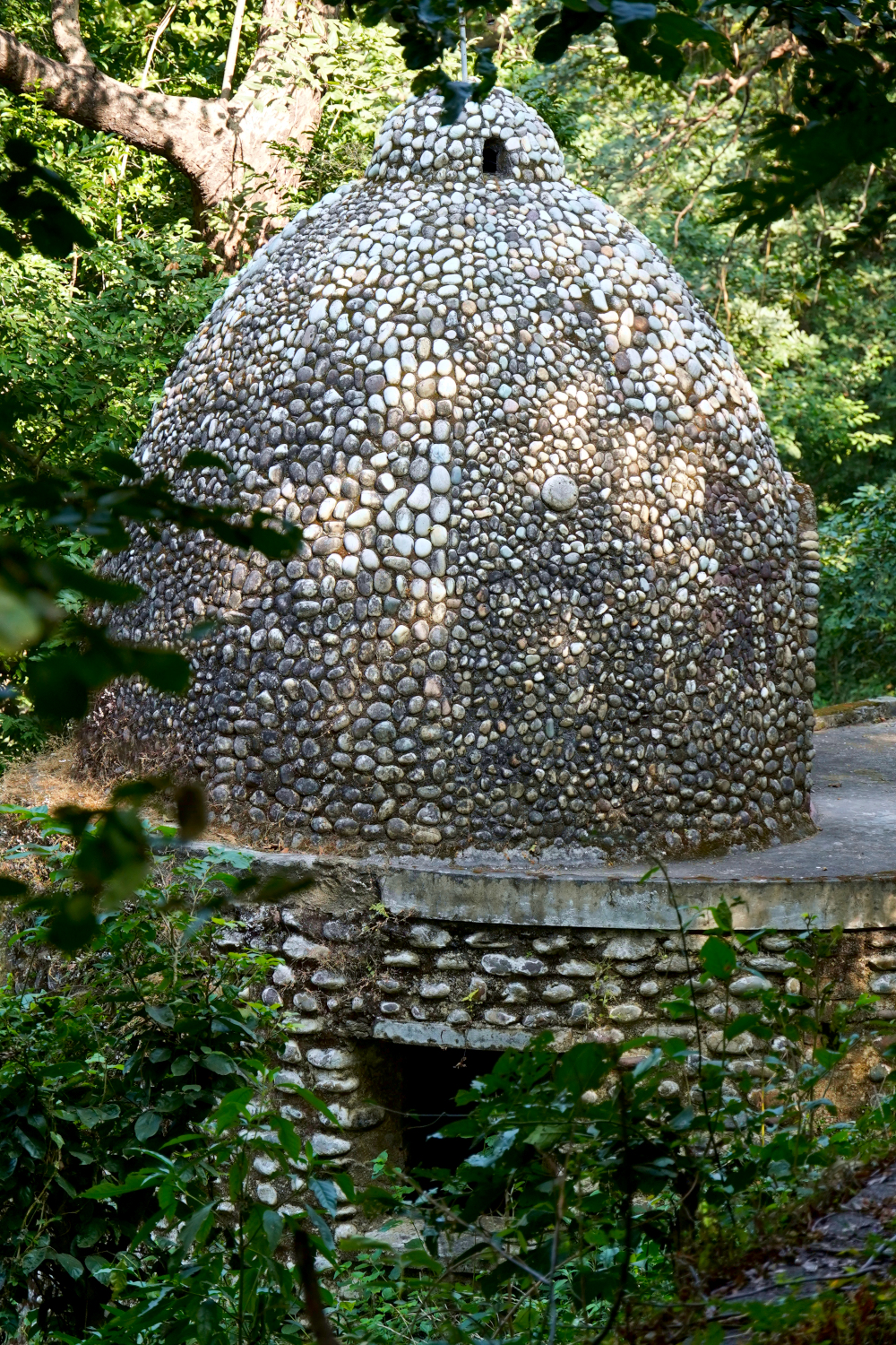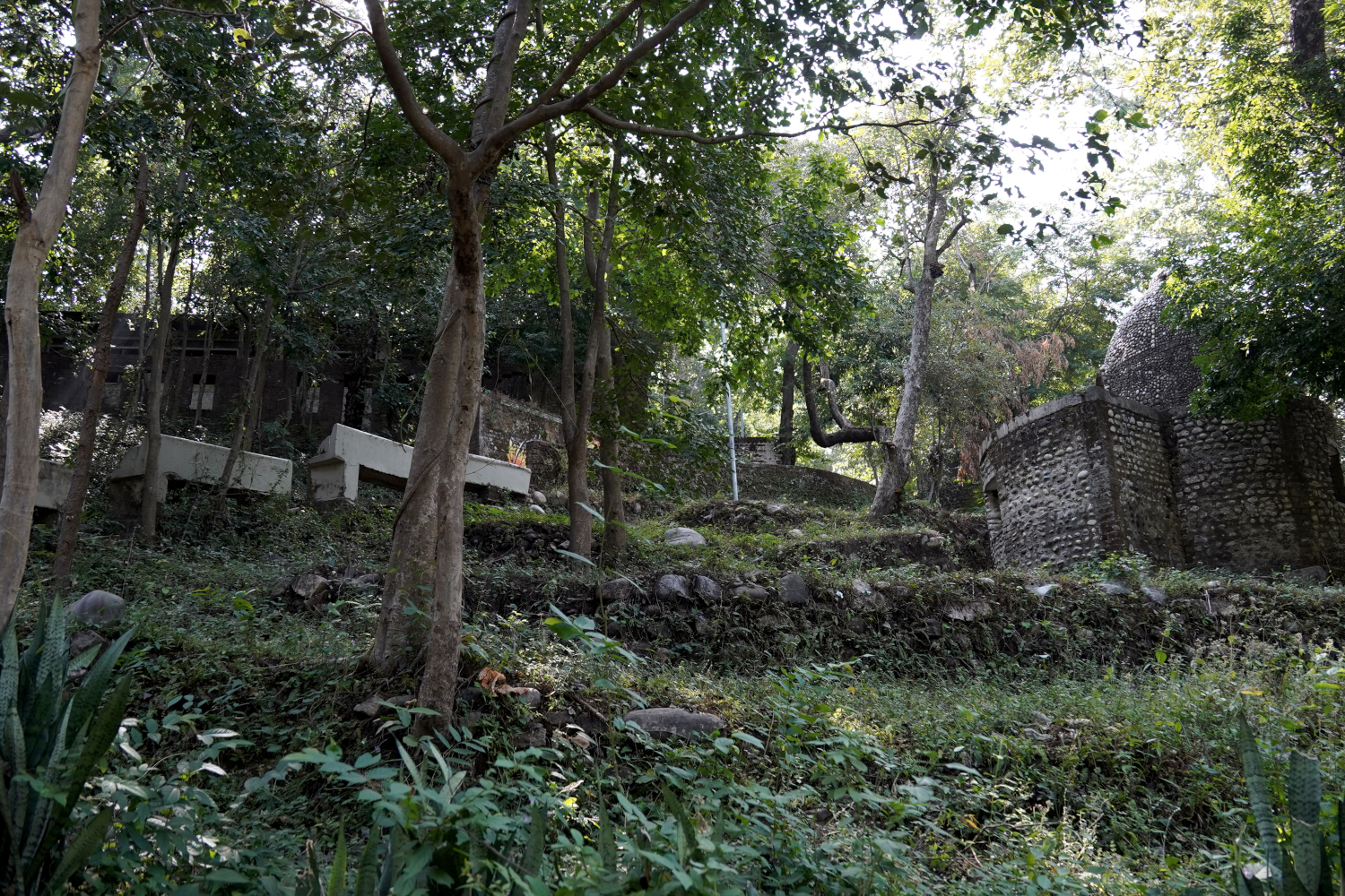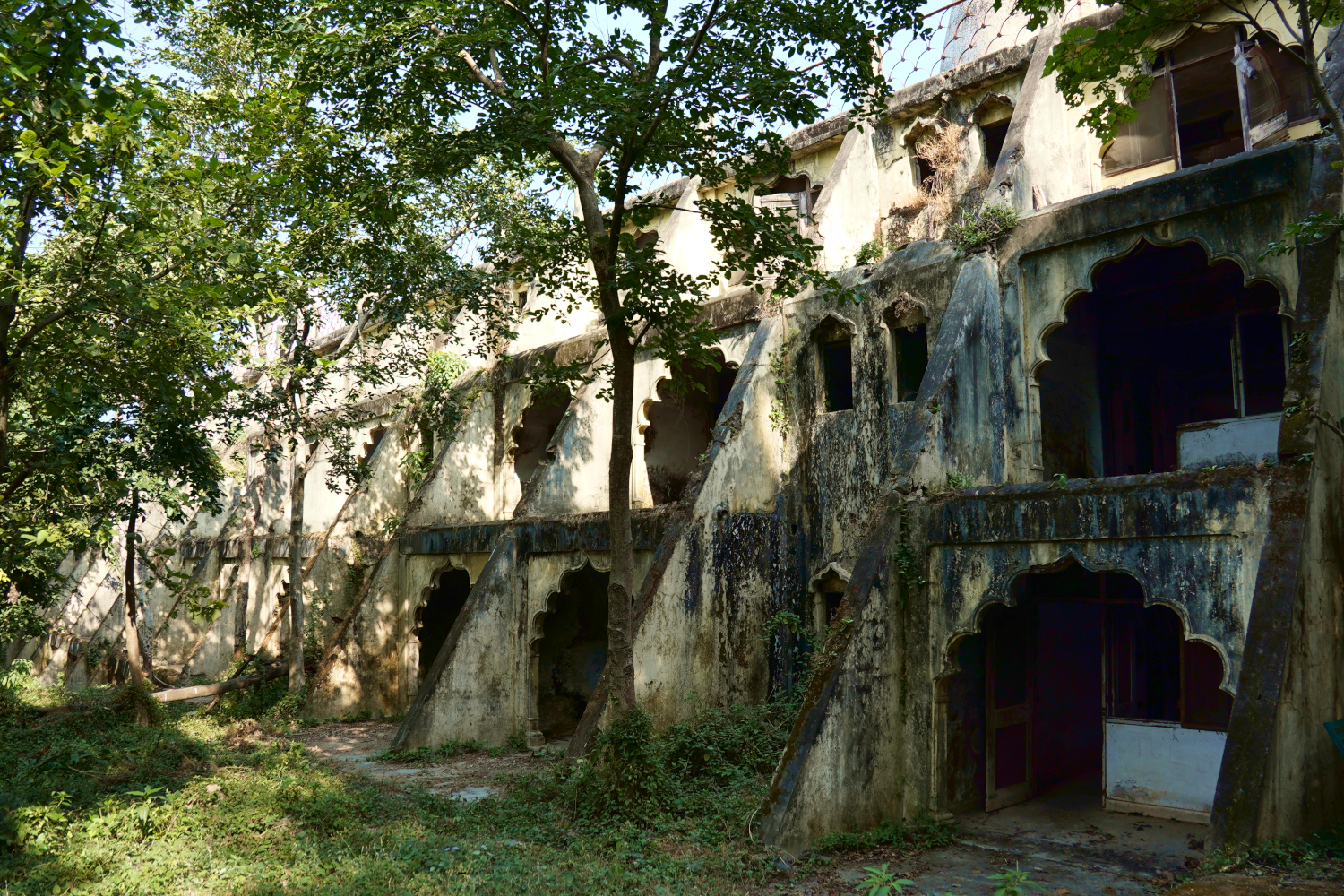 The ashram was constructed in 1963 with funding from American philanthropist Doris Duke, who was — of all things — a tobacco heiress. It was abandoned about 30 years ago, so the structures have fallen into disrepair and have taken on the air of ancient ruins. Well, after all, the Sixties were pretty ancient, weren’t they.