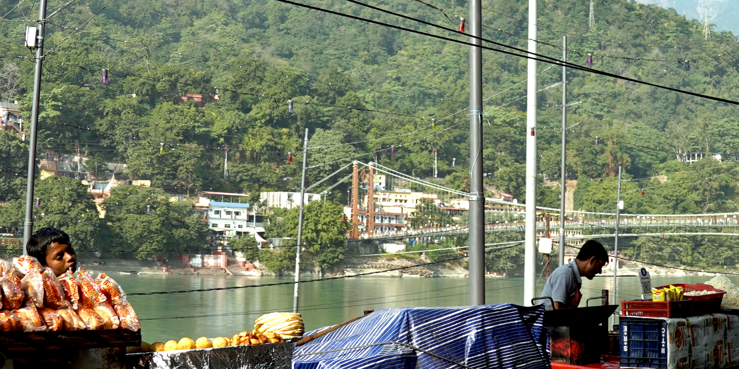 After tuk-tukking into Rishikesh from Raiwala, we first stop at V Mart, where Kimberly purchases a coat and sweater to be prepared for the coming winter. Yes, in India — it is getting cold here, but it will be even colder where we’re headed later. Dennis doesn’t find one suitable for himself.