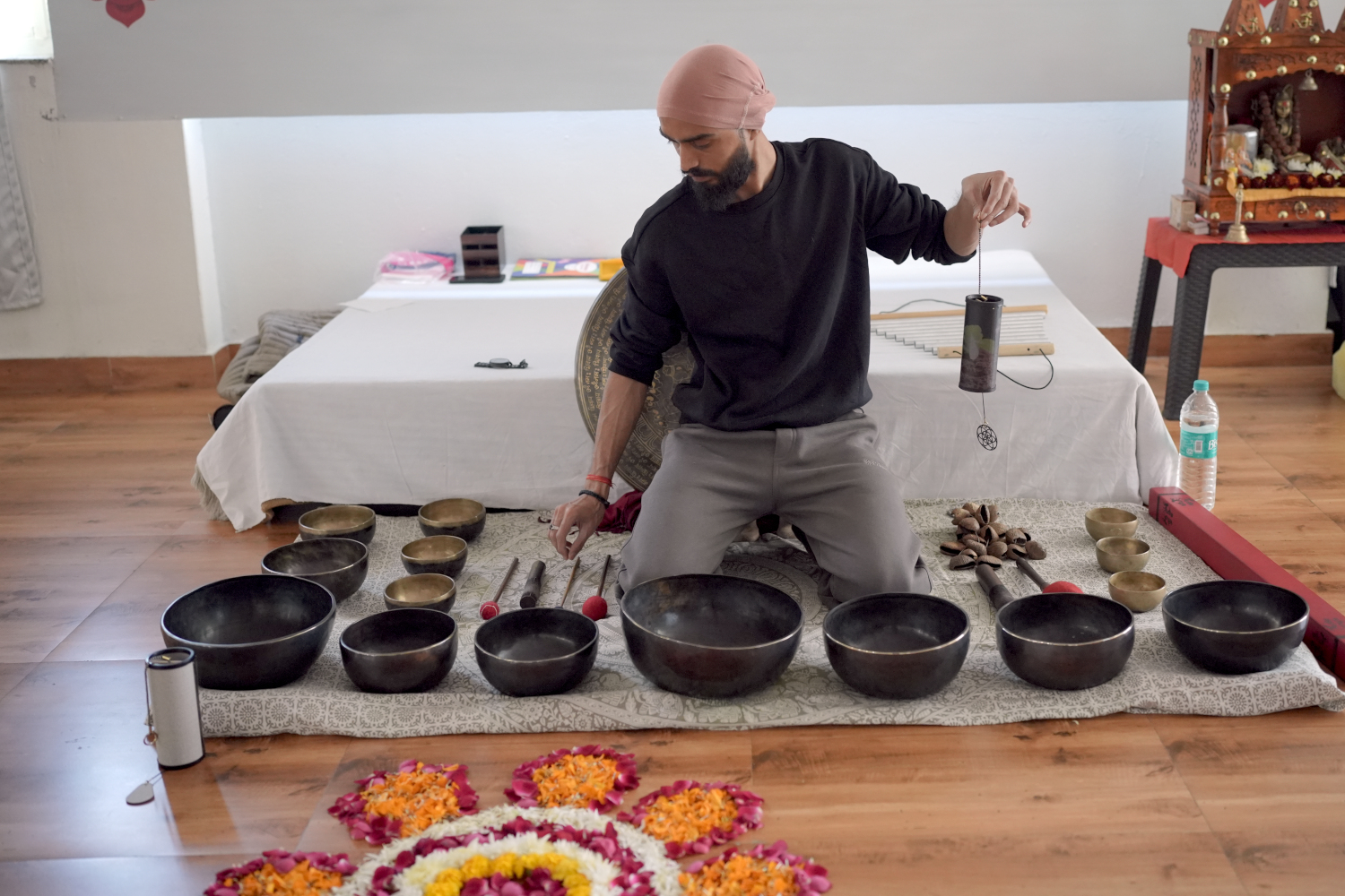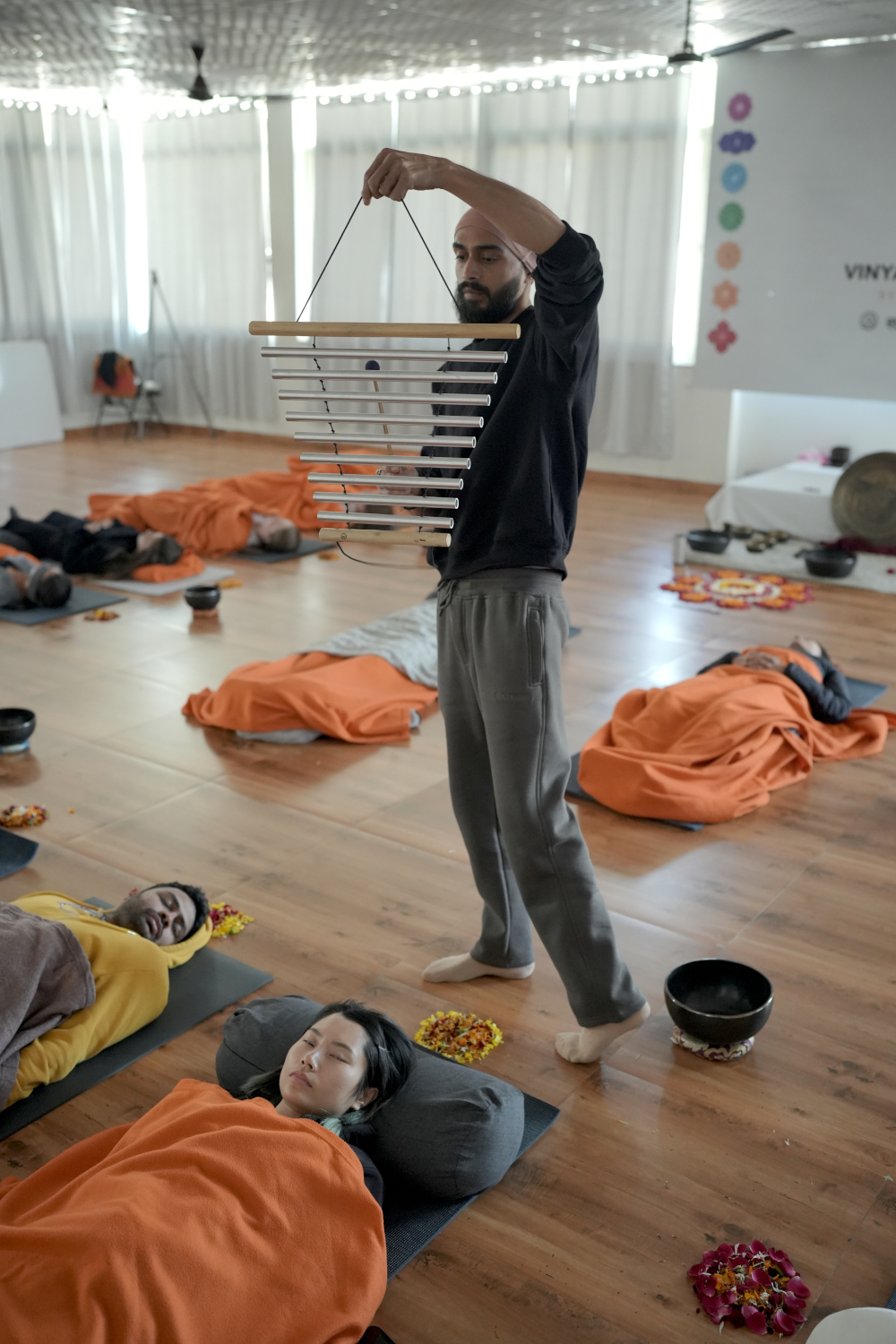Huh? What is sound healing? That’s the question most of us are asking ourselves. But seeing as how we are all here to push limits and learn new things we are all game. There is a guest teacher who arrives with a series of bowls, chimes and other things that fill the spaces with delightful audio. Before the session begins, we’re given flower petals that we pile in a decorative(?) pattern next to our mats. My creation ended up looking more like a blob then the artful piece that adorned the center of the room. Then we lie down and let the sounds wash over us. It’s one of the most relaxing experiences I have ever had.