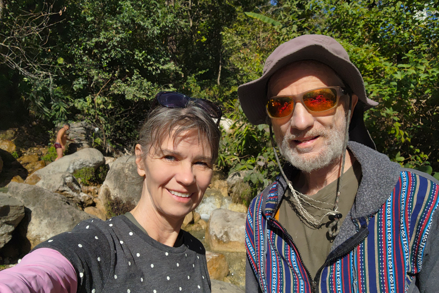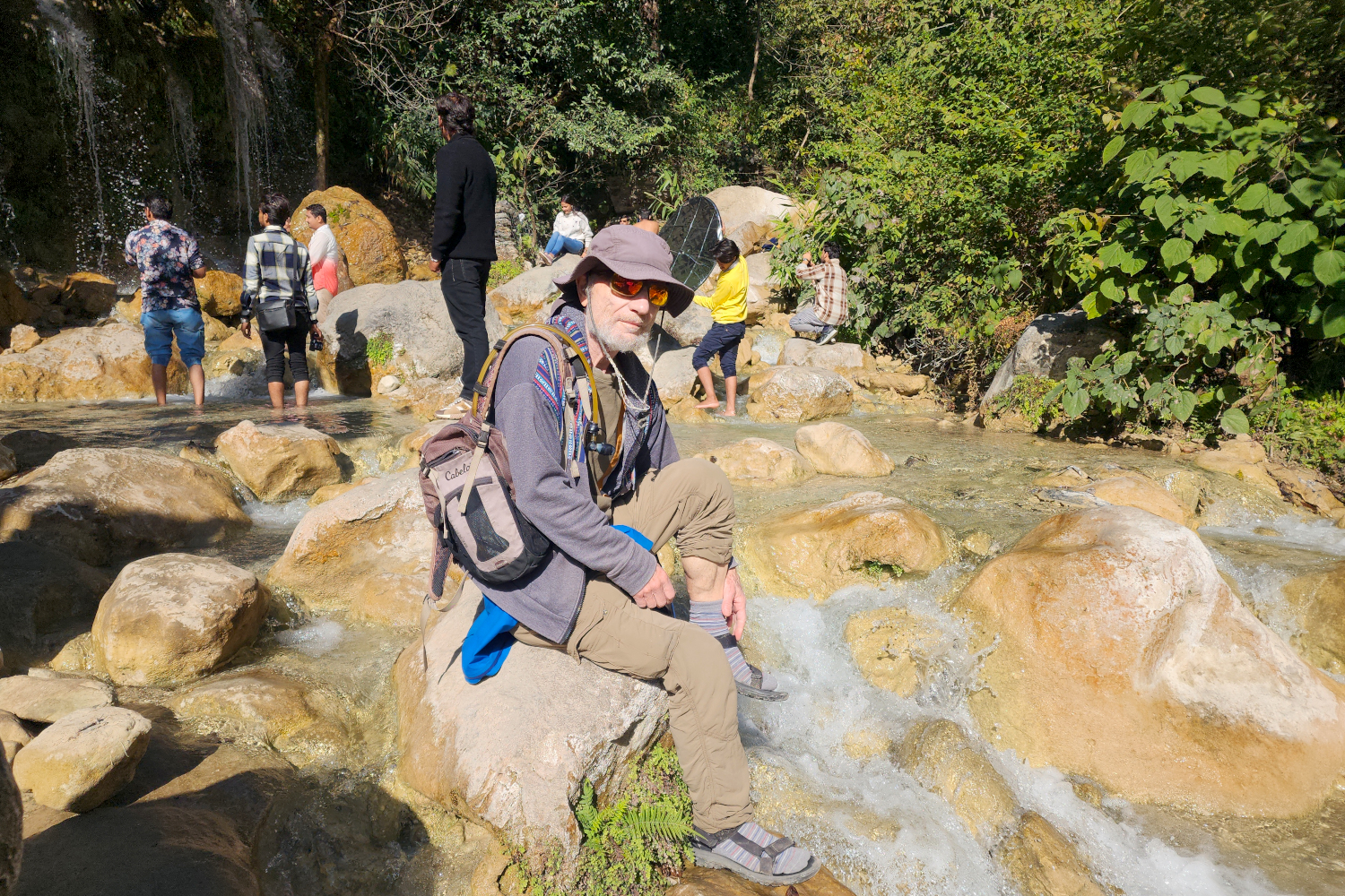 During the day, we hike up the hill to a little waterfall, the Hidden Waterfall, It’s a place Kimberly’s been wanting to take Dennis since she discovered it a couple of weeks ago. A calming susurration of water cascading and trickling down the rocks, into a pool that’s ideal for taking a little dip if you’re game for goosebumps. And a few guys are doing just that, in their underwear. Power to them.