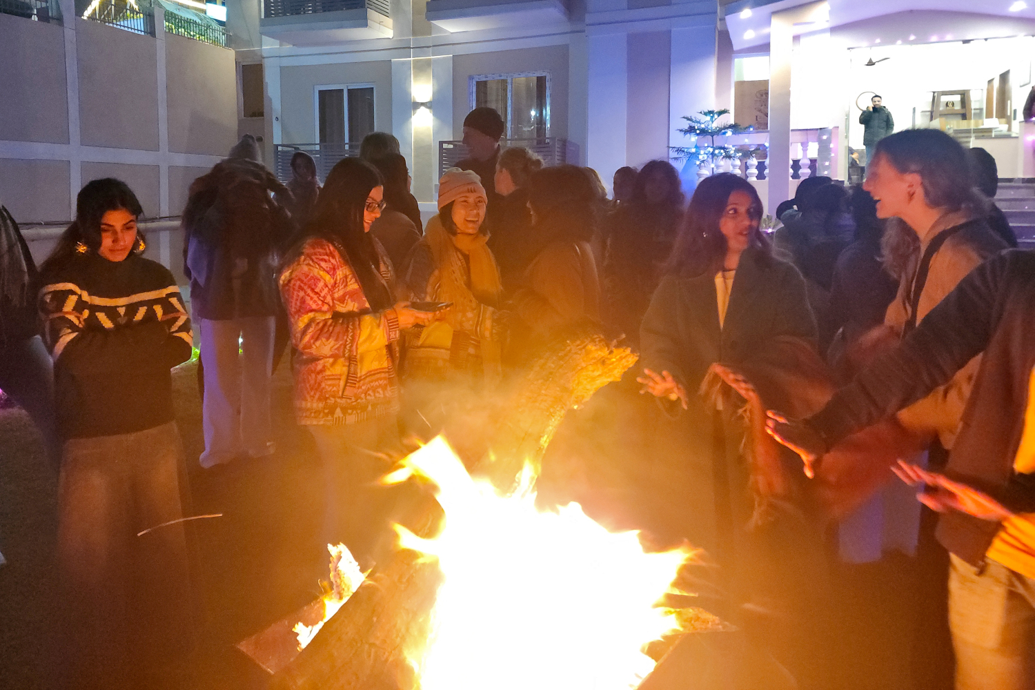 In the evening after we get back, Kimberly and her fellow students have an outdoor party to celebrate the end of classes, complete with bonfire and dancing. The chill night air in the hills above the Ganga is warmed by the crackling heat of the fire and the companionship.
