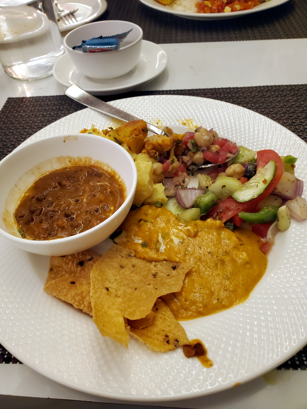 So later, we make our way to the cafeteria style restaurant that Dennis ate at on a prior solo trip, a bustling hive with the chatter of a crowded bus terminal. He wants to introduce Kimberly to the paneer wrap such as he had before — it was quite sumptuous, crisp on the outside and moist on the inside, and not at all too fatty. But this time the manager is not on hand to navigate the menu, and we end up ordering something that we think is what we want, but it ends up being totally different –and as salty as Utah. We’re unable to finish even half of it, and half to ask for to-go containers. Ultimately, it will remain uneaten, and be discarded.