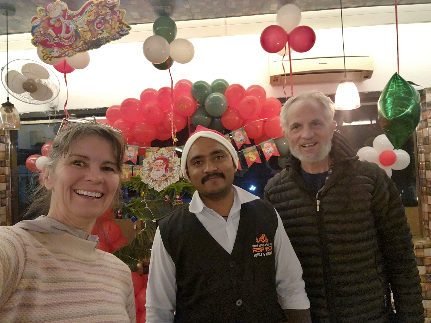 Tuesday is Christmas Eve. And while the locals themselves don’t make an issue of Christmas, they realize that many tourists do; and there are rupees to be raked in by catering to their holiday sentiment. One thing that catches our eye is a Christmas Eve buffet dinner, to be held at a hotel in the evening. So we decide having a nice meal out would be a good thing to do on Christmas Eve, and make plans to do so.