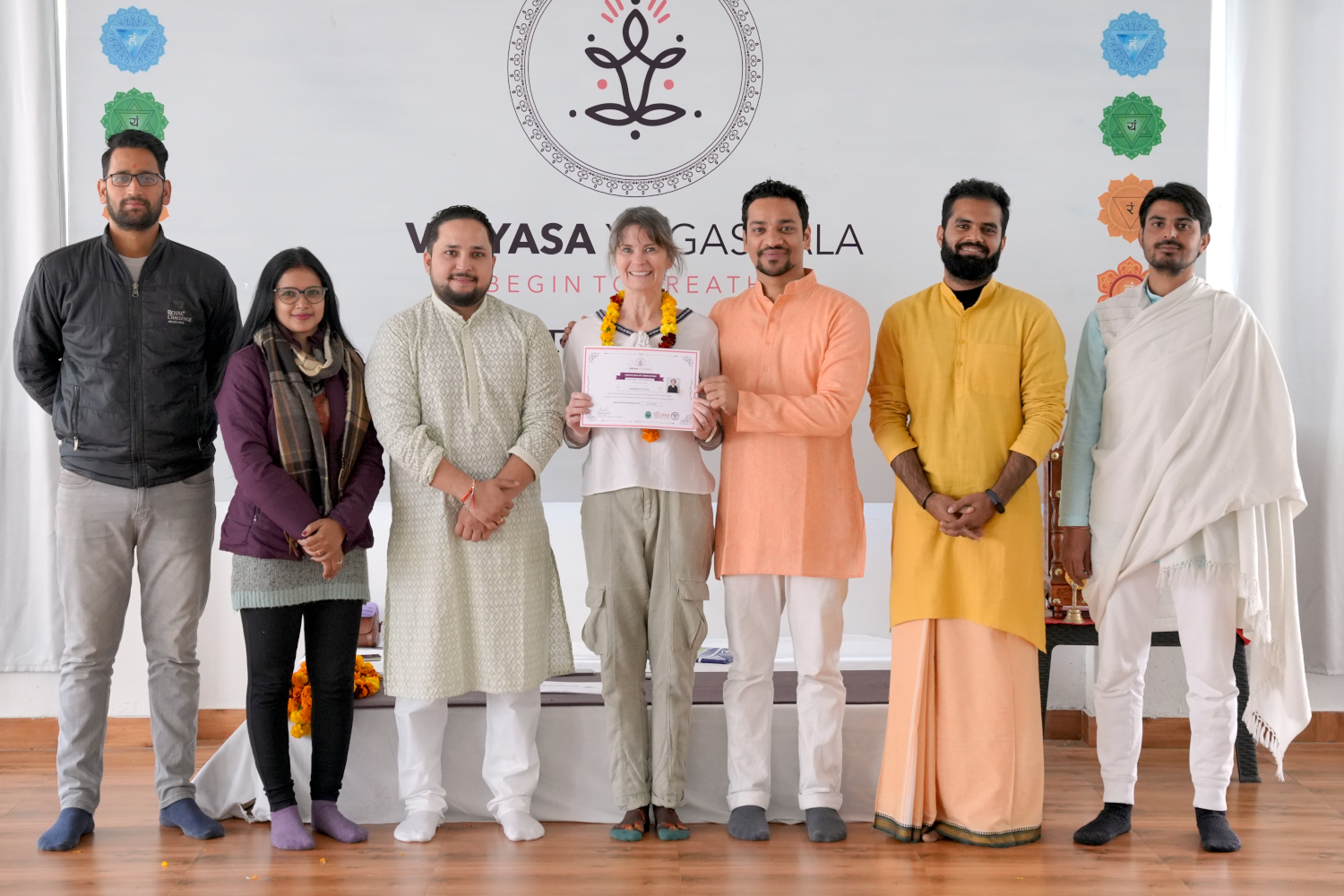 While Rishikesh prepared for a quiet Christmas Eve, Kimberly was celebrating her own significant milestone: the graduation ceremony at Vinyasa Yogashala. For weeks, her life had revolved around the demanding 200-hour teacher training – early mornings, rigorous physical practice, and the brain taxing study of philosophy and anatomy. It was a journey that stretched her in every way imaginable, preparing her not just to teach yoga, but to live it.