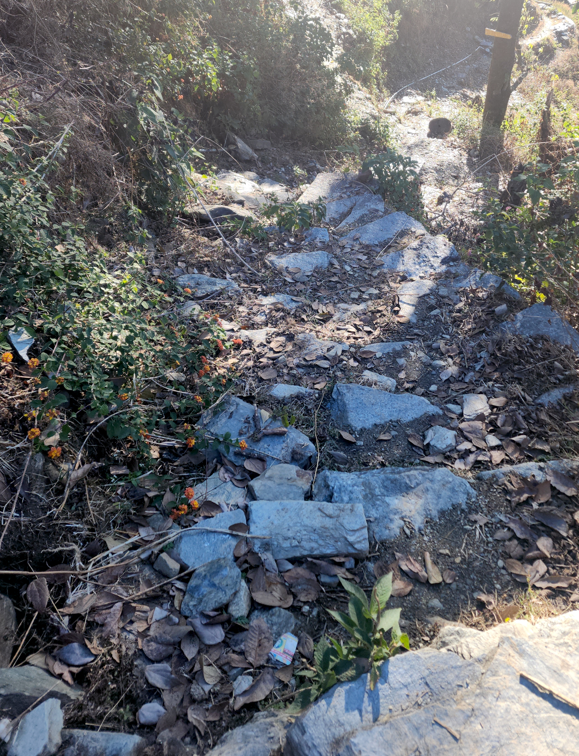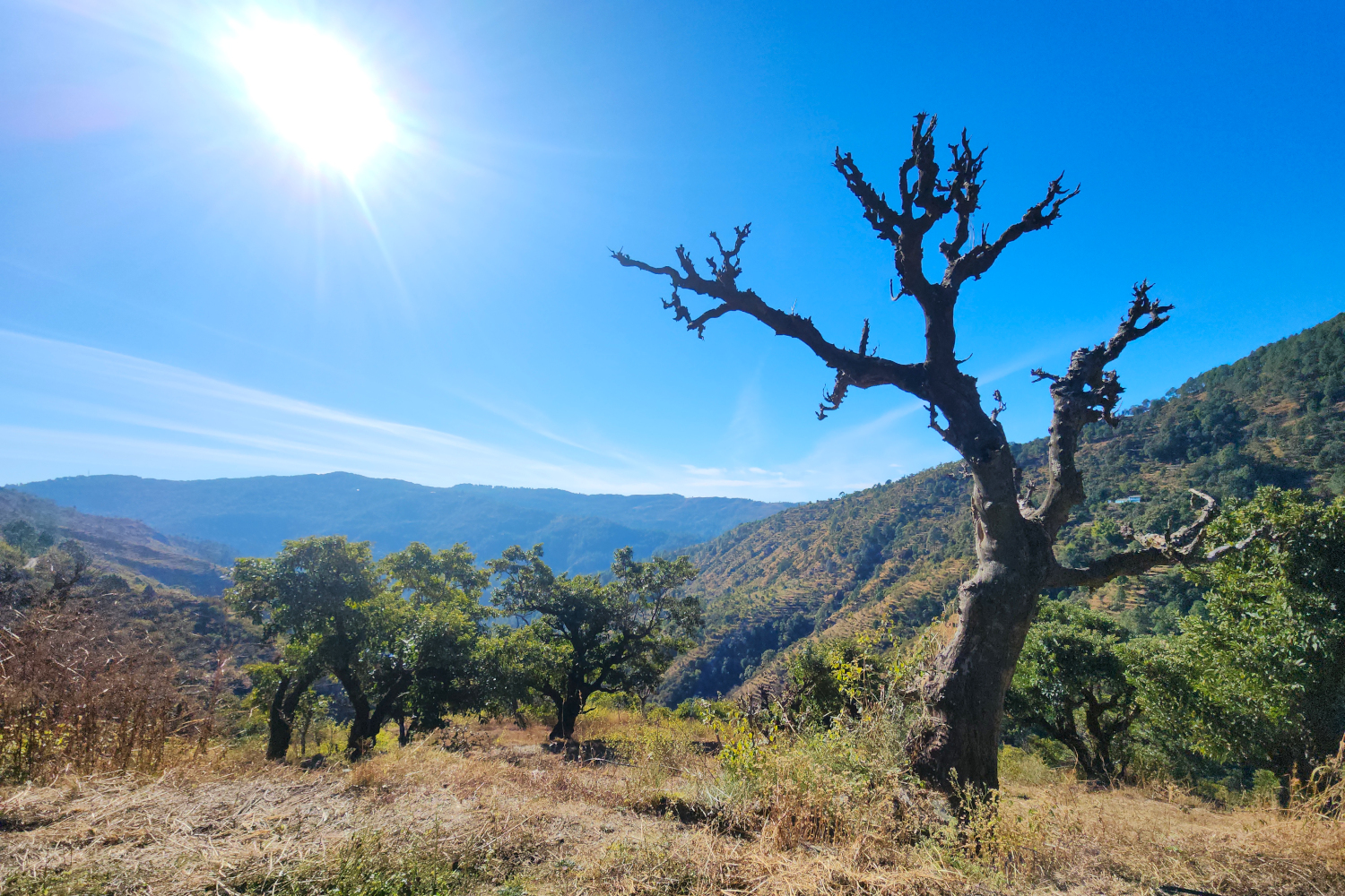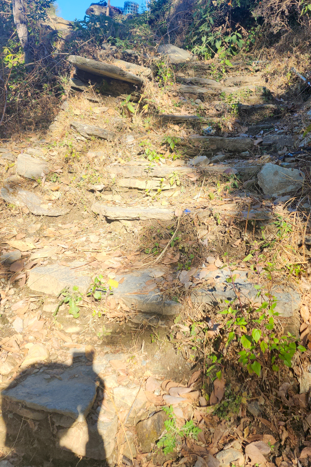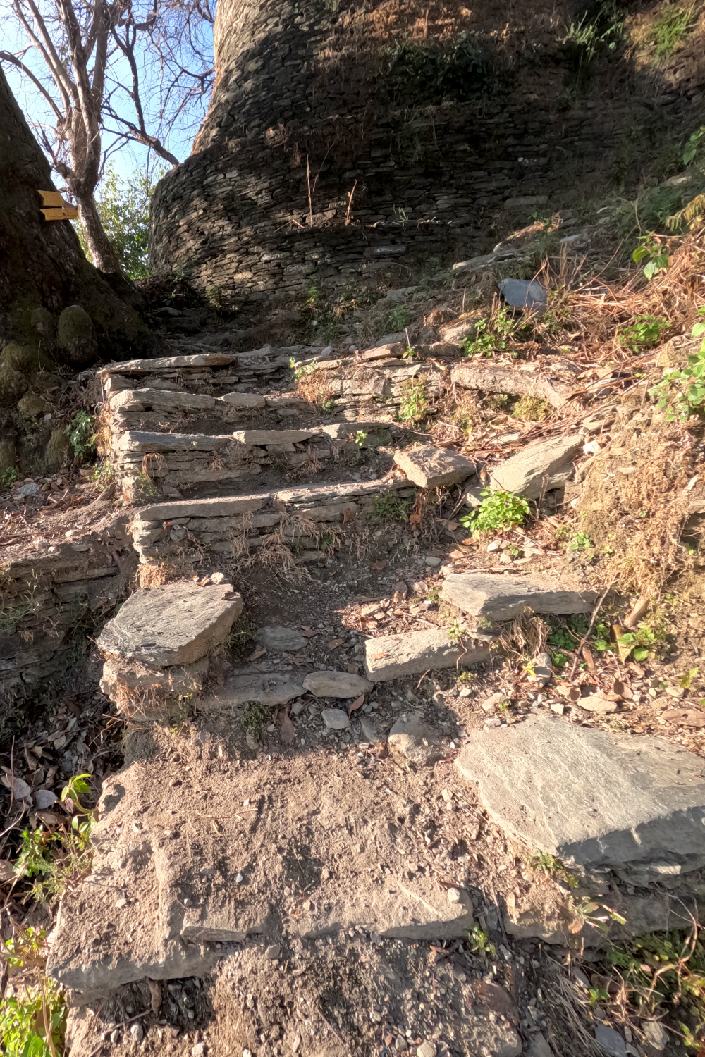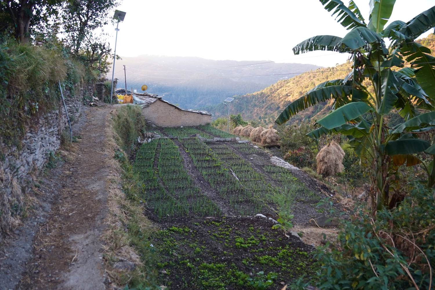 These mountains are lined with miles and miles of terraces, laced around the slopes at intervals of about 5 feet. Nobody knows exactly how long they’ve been here — all were dug several centuries ago, and some may be as old as 4000 years or so, give or take a century. Because that’s how far back the tradition of terrace farming stretches here in the state of Uttarakhand. Standing high up on the hill, you can view hundreds of them (thousands?) stretching on and on, on that hill and the one beyond it, and the one beyond that, and so on. There is literally no end in sight.