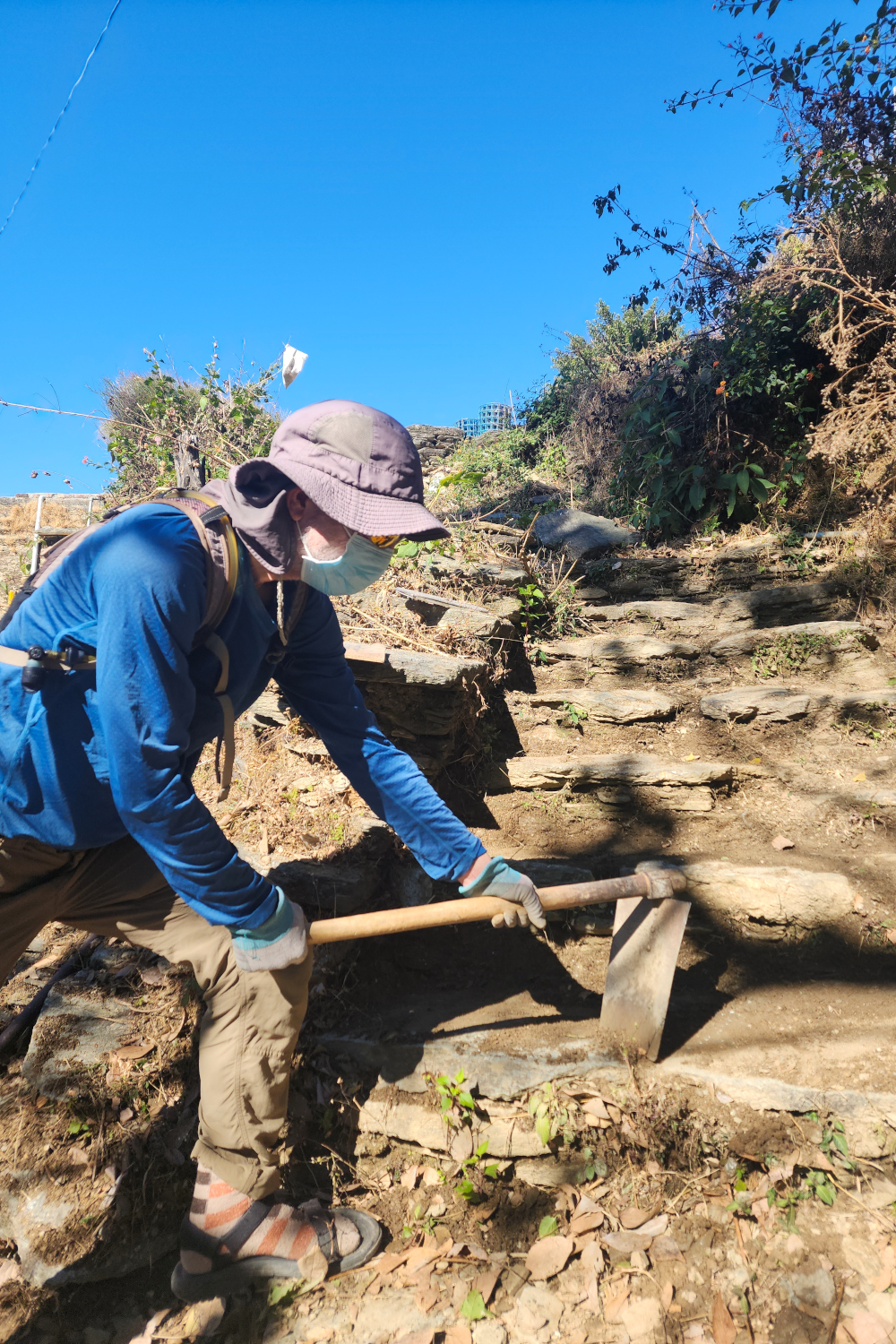 On the last day of the old year and the first day of the new, as if cementing the transition, we engage in an activity slightly comparable to terrace farming, though certainly on a less grandiose scale. No, we don’t build stepwise structures into the hillside. But we do clean one off to make it more usable. That (mostly) paved pathway twisting and swirling down from the road to our compound like a drunken tornado, the one we hiked down precariously a few days earlier when we arrived, has become littered with leaves and twigs and loose gravel, making it perhaps a bit more hazardous than it needs to be. So grabbing what tools we can round up (making do, at times, with a tree branch or thick bamboo stalk, as the real tools are needed elsewhere), we painstakingly clean it off. There! Both practically and symbolically, a new beginning for the new year. (Its state of cleanliness will only last a week or so, but new beginnings often have to be refreshed.)
