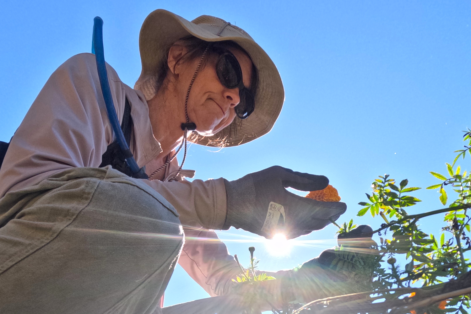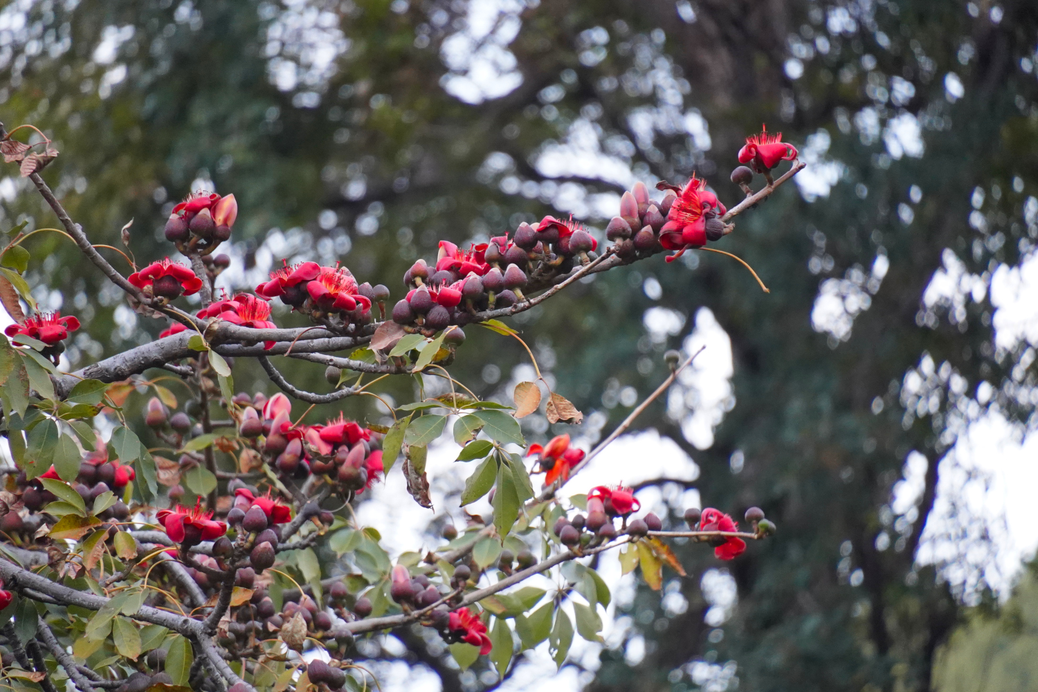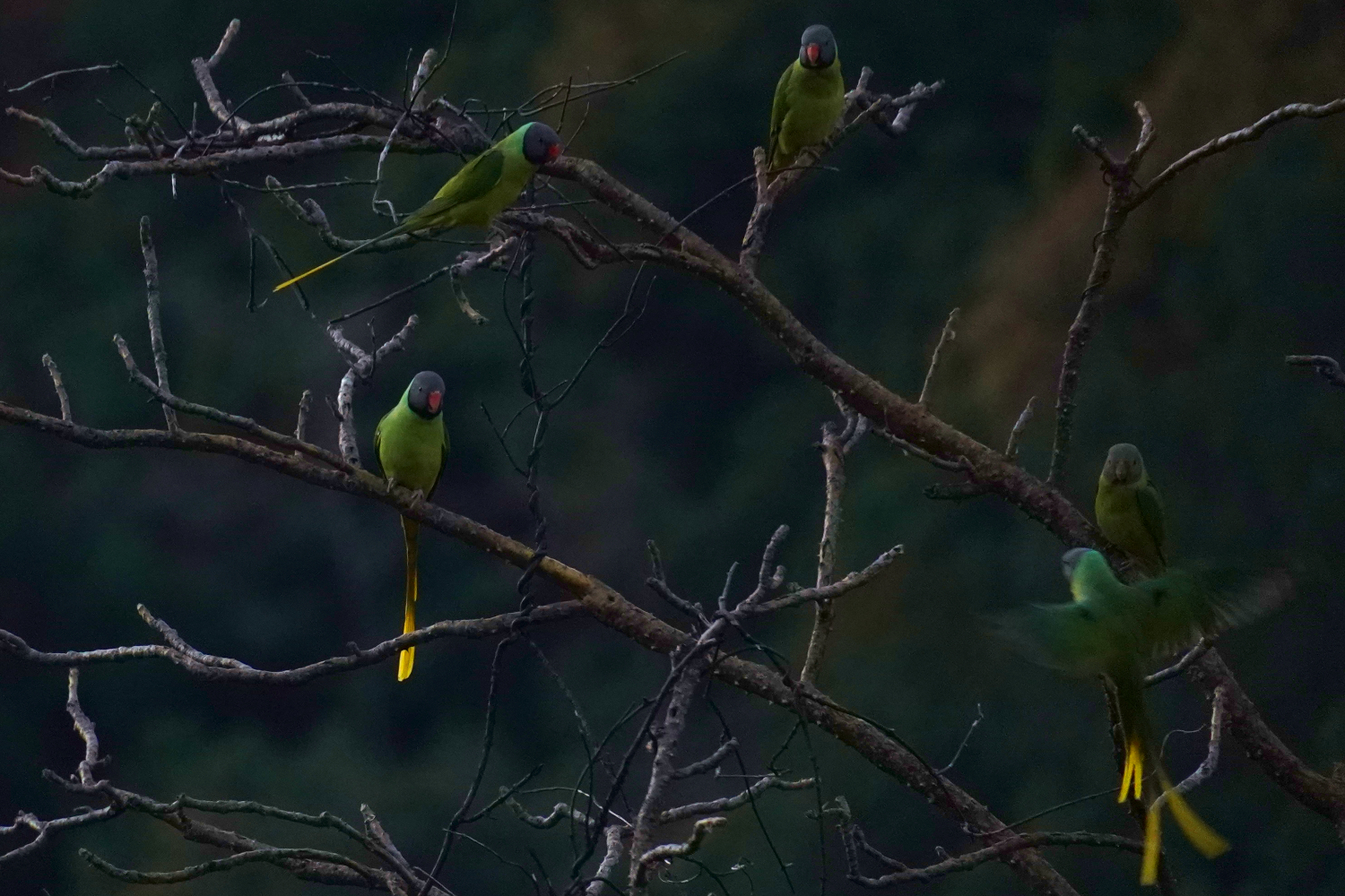 Kimberly, like other volunteers, enjoys doing yoga outside on the sun deck, in front of some truly inspiring scenery. And she’s been going on an absolute rampage with her camera, as there is so much to photograph — from people to cows to vivid scenery to brilliantly colored birds. We spot quite a hullaballoo of the latter in one particular tree during one pre-dawn stroll through the hills.